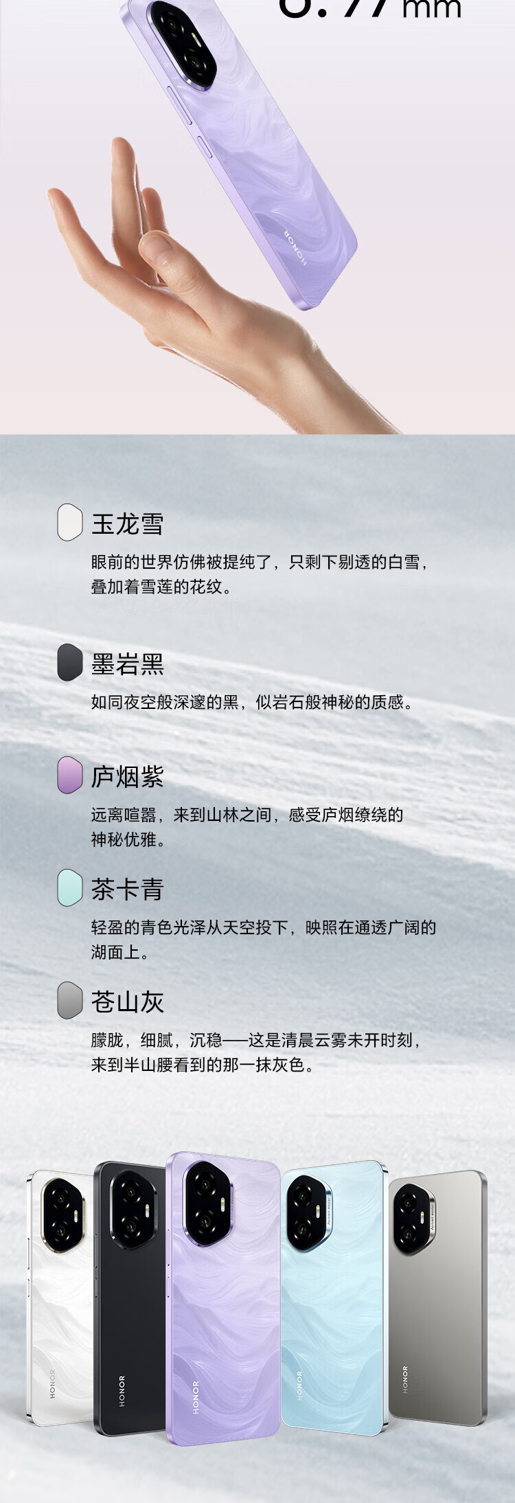 荣耀(HONOR)300 新品上市 5G智能手机 超薄小直屏单反级双防抖主摄100W快充 玉龙雪 8GB+256GB