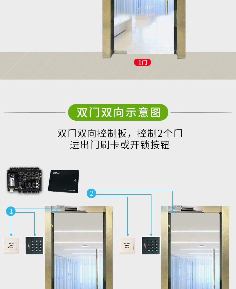 ZKTECO熵基科技纯门禁配件套餐系统不含门禁一体机非考勤指纹刷卡门禁 套餐六:双开木门/铁门/防盗门