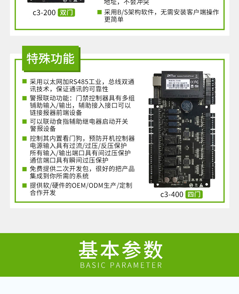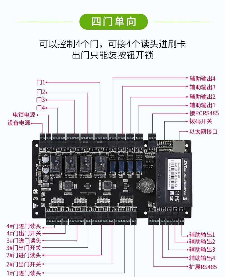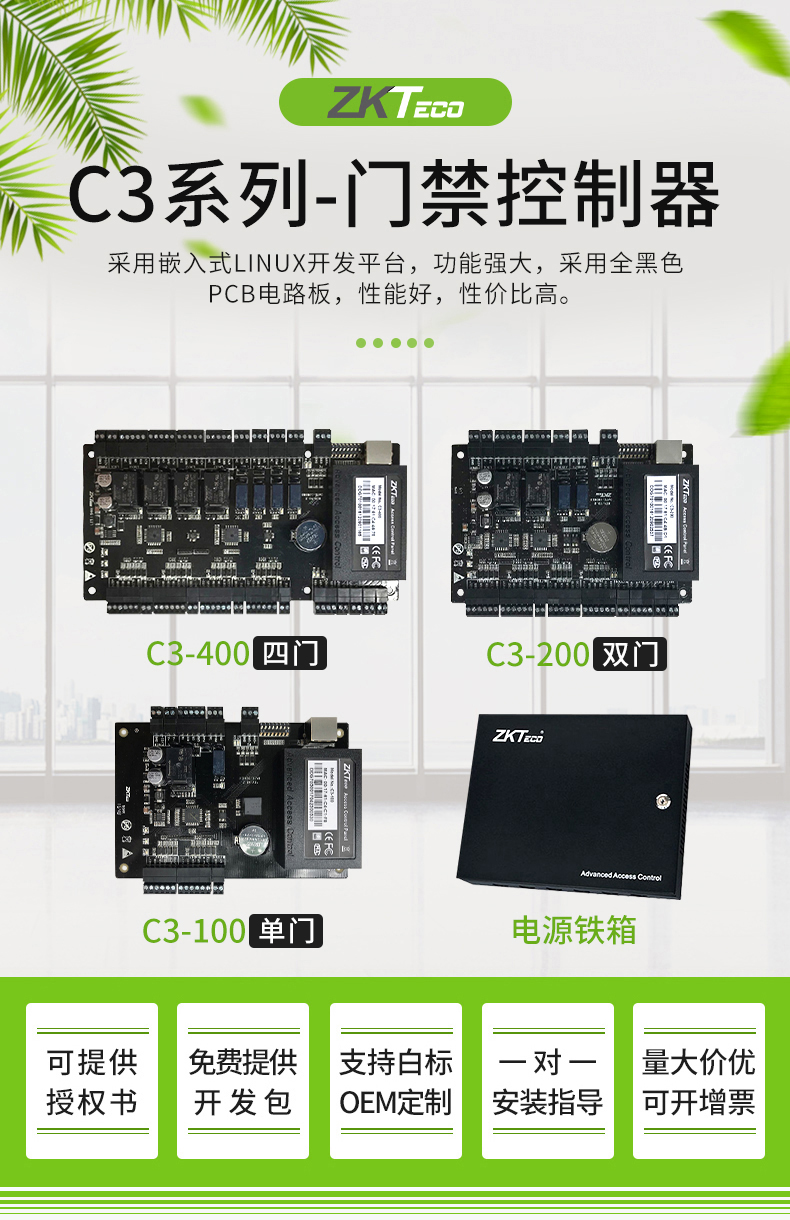 熵基ZKTeco 熵基科技门禁控制器控制器主板C3-100/C4-100单门C3-200/C4-200双门四门门禁系统套装智能 C3-100单门控制器