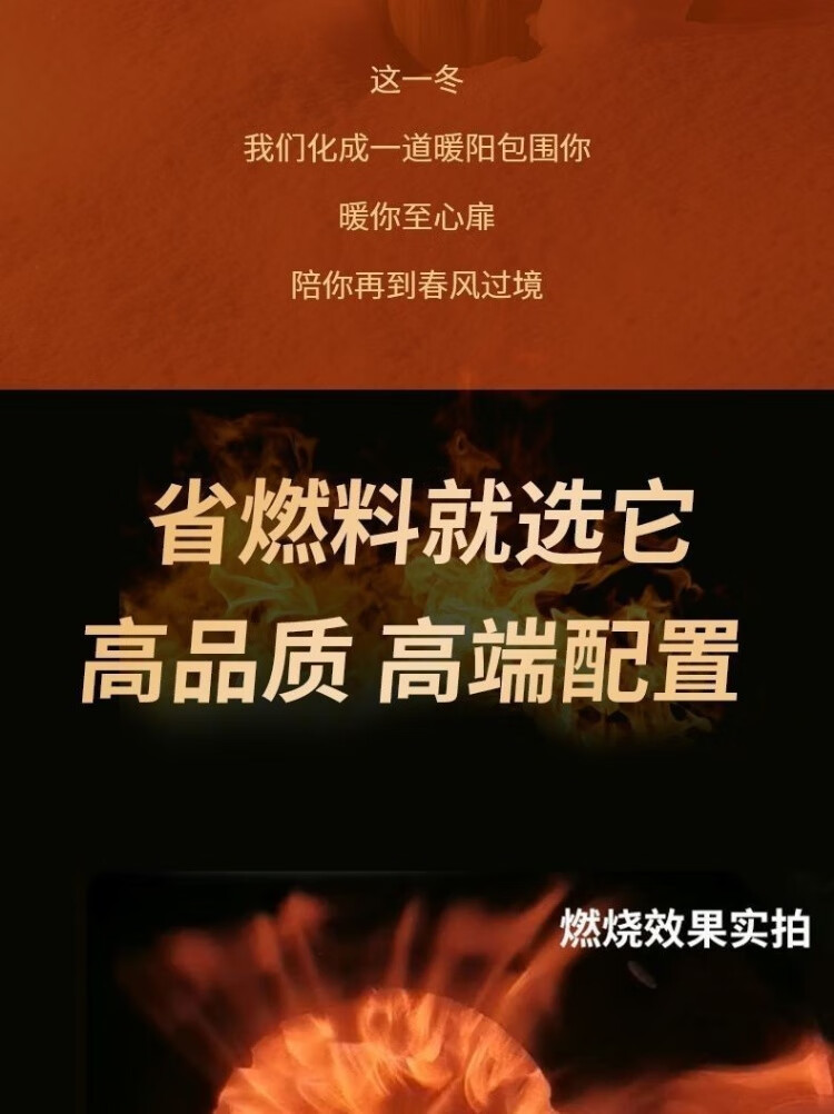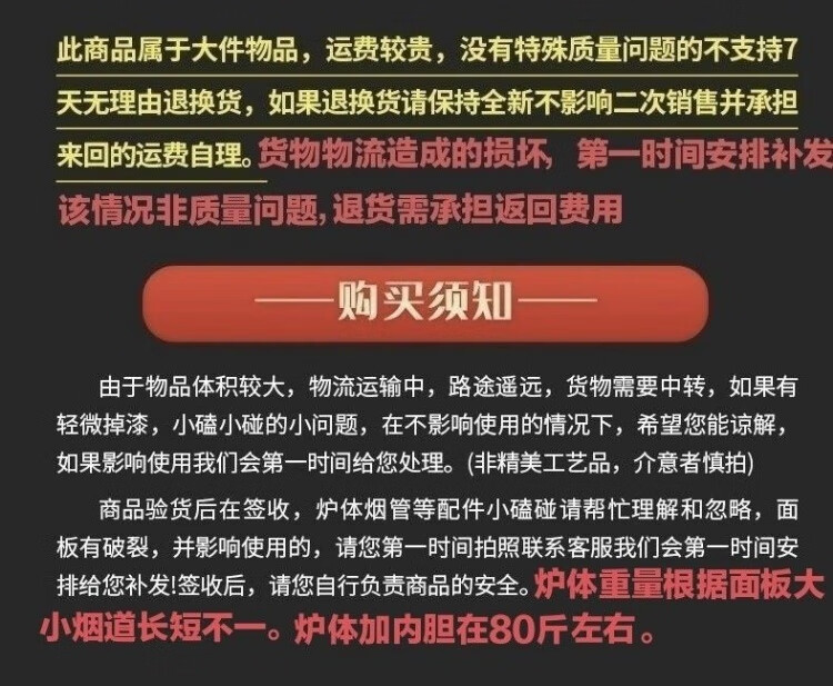 规格:长1.38米x宽0.75米x高0.63米,横烟管请不要拐弯 燃料类型: 固体燃料,烧柴,烧有烟煤,煤要求烧完是那种白色的灰,不能烧生物质颗粒,不能,不可以烧钢煤,金沙煤!!!。链接图片只是款式花色参考 炉子以实物为准(炉子非工艺,加上物流运输,产品无法做到精细完美),介意慎拍,因为是玻璃面板,主图与实物花色图片有一定色差, 请认真阅读说明书 内胆锥形炉膛设计有利于燃料充分燃烧。通过二次进风管道加入高温预热二次供氧技术后,第一次燃烧后所产生的烟雾(一氧化碳、碳微粒粉尘等),再次聚集到上口同高温空气进行混合二次燃烧,燃烧更彻底,烟囱无明显烟雾排放,节能效果比普通炉具高出40%