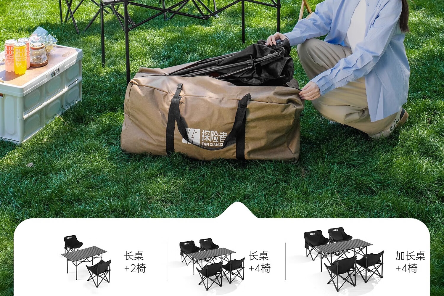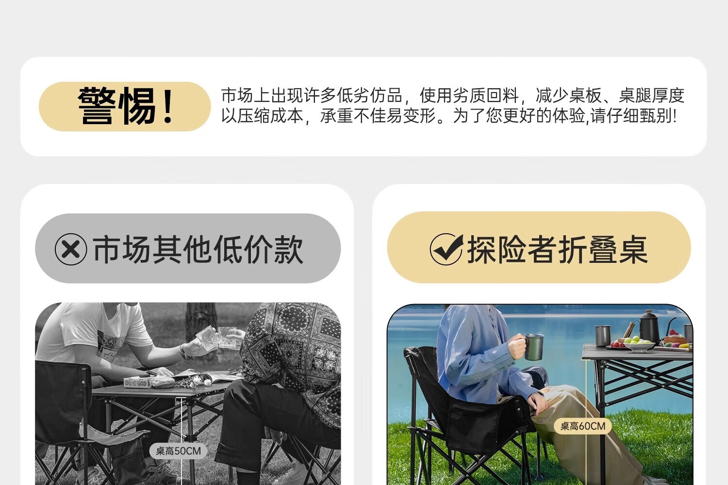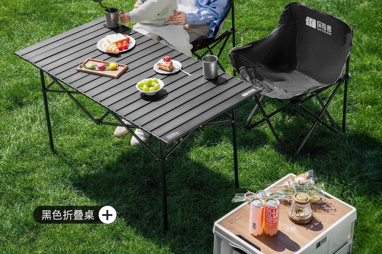 探险者户外折叠桌子露营桌椅折叠椅便携蛋卷桌野炊折叠桌露营装备一体 121cm折叠桌+推车+桌板