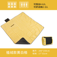 北岳野餐垫加厚防潮垫户外露营便携防水野炊垫子野营沙滩声波爬行布垫 【绒布加厚款】黄白格200*150cm