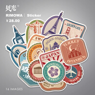 贝光16张复古地标欧美贴拉杆箱旅行复古个性防水电脑冰箱装饰贴画