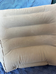 包装完整,24小时送货上门,面料柔软,无异味!自带充气泵,放气后可折叠不占地,外出旅游长时间坐车必备!善待自己的腰!唯一有一点点瑕疵:就是充气时需要多次反复按压,但优点多多!可以接受!完美!为下次远足做好准备!