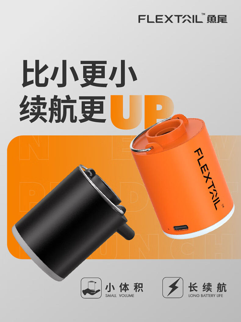 FLEXTAILGEAR鱼尾户外电动充气泵便携式气垫床泳圈打气泵露营睡垫抽气泵轻量化 【橘色】鱼尾光波泵【续航升级+照明】