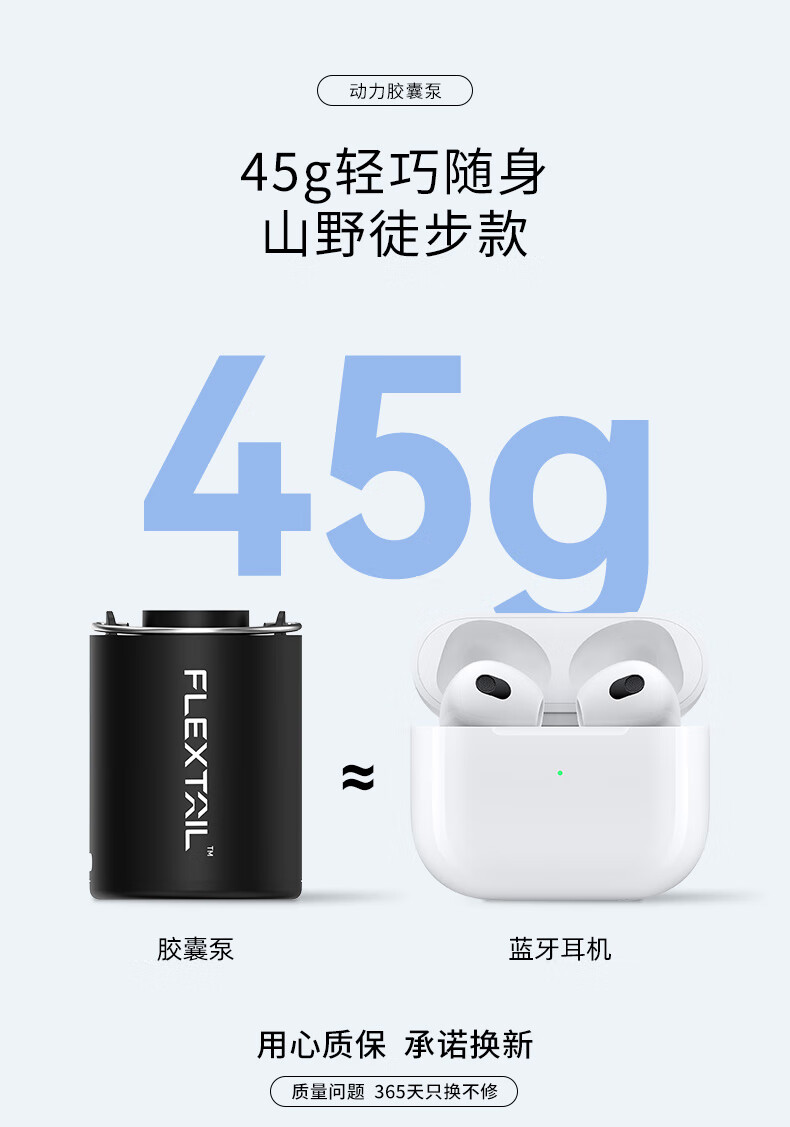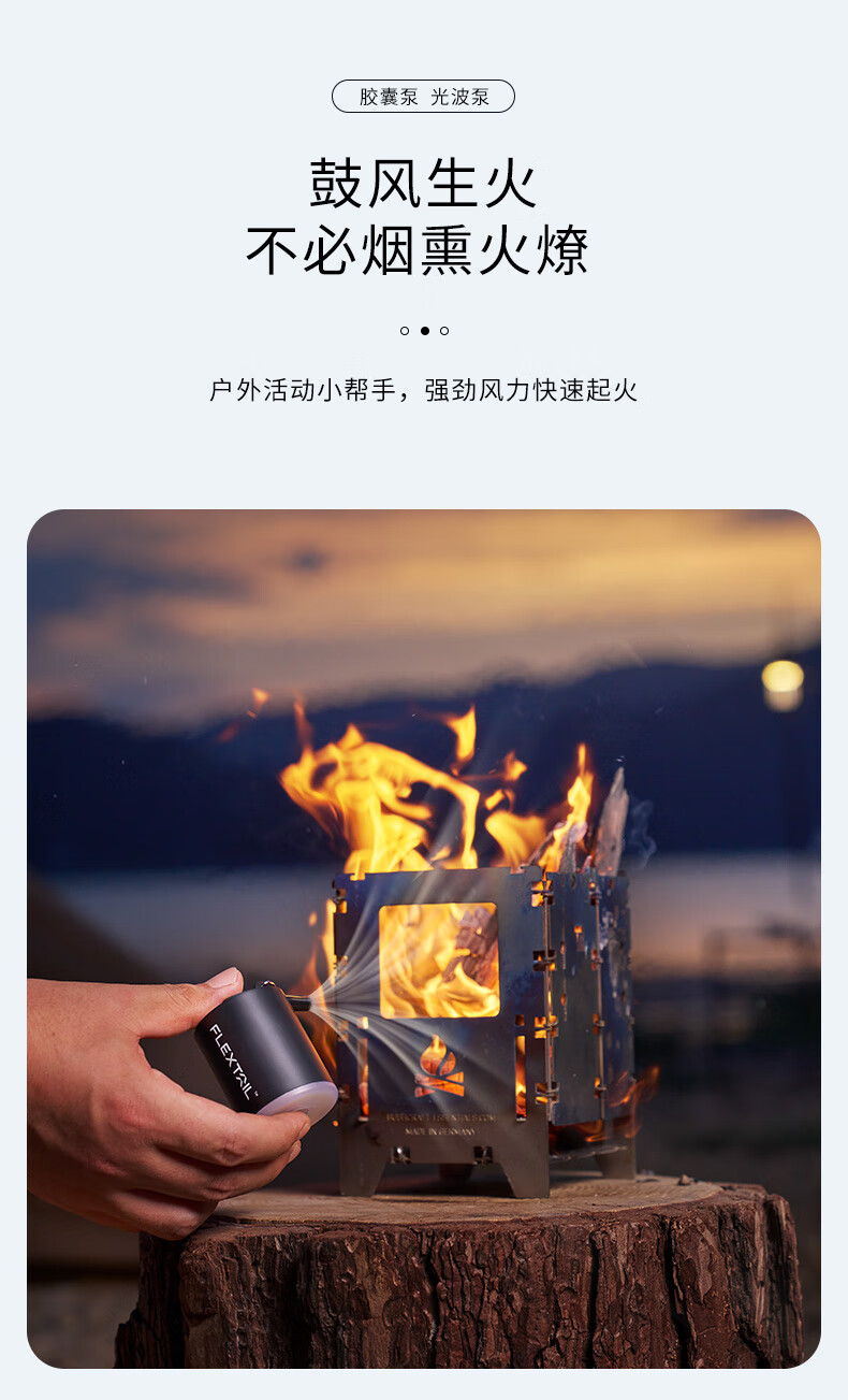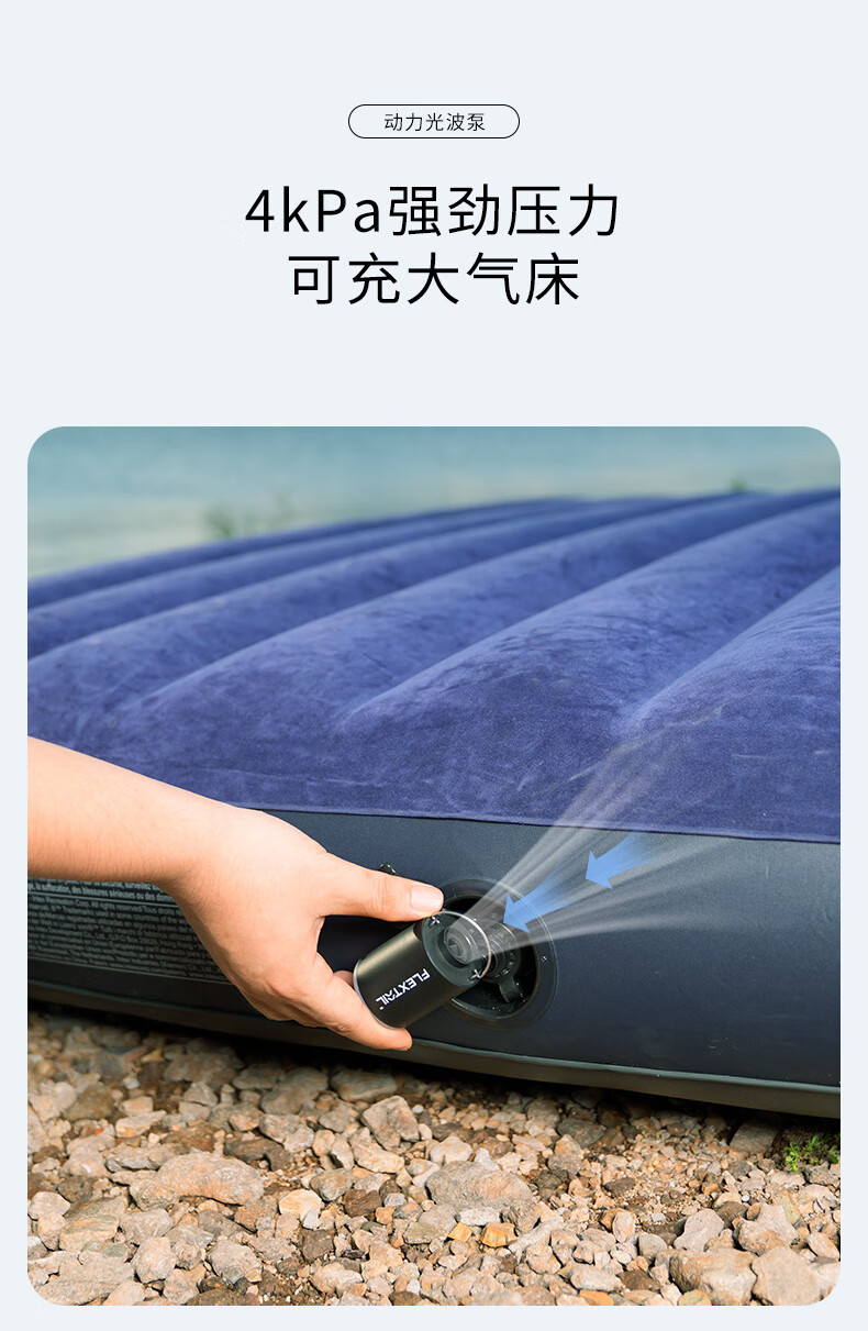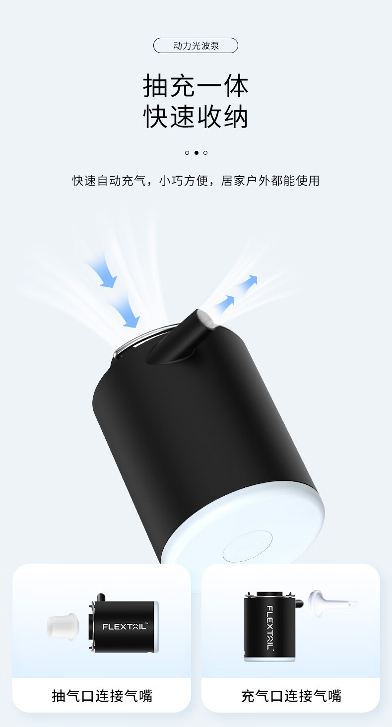 FLEXTAILGEAR鱼尾户外电动充气泵便携式气垫床泳圈打气泵露营睡垫抽气泵轻量化 65g升级续航照明光波泵(黑色)