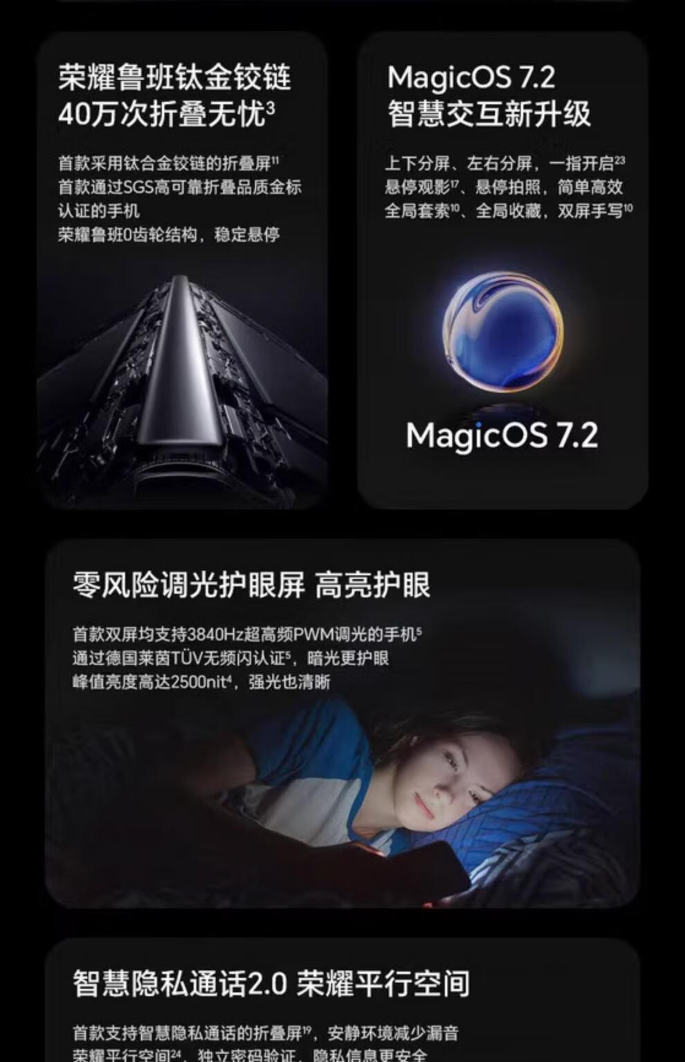 荣耀honor/荣耀 Magic V2展机折叠屏超轻薄设计零调光护眼双屏手机正品赠运费险详情咨询客服 绒紫色 16GB+512GB