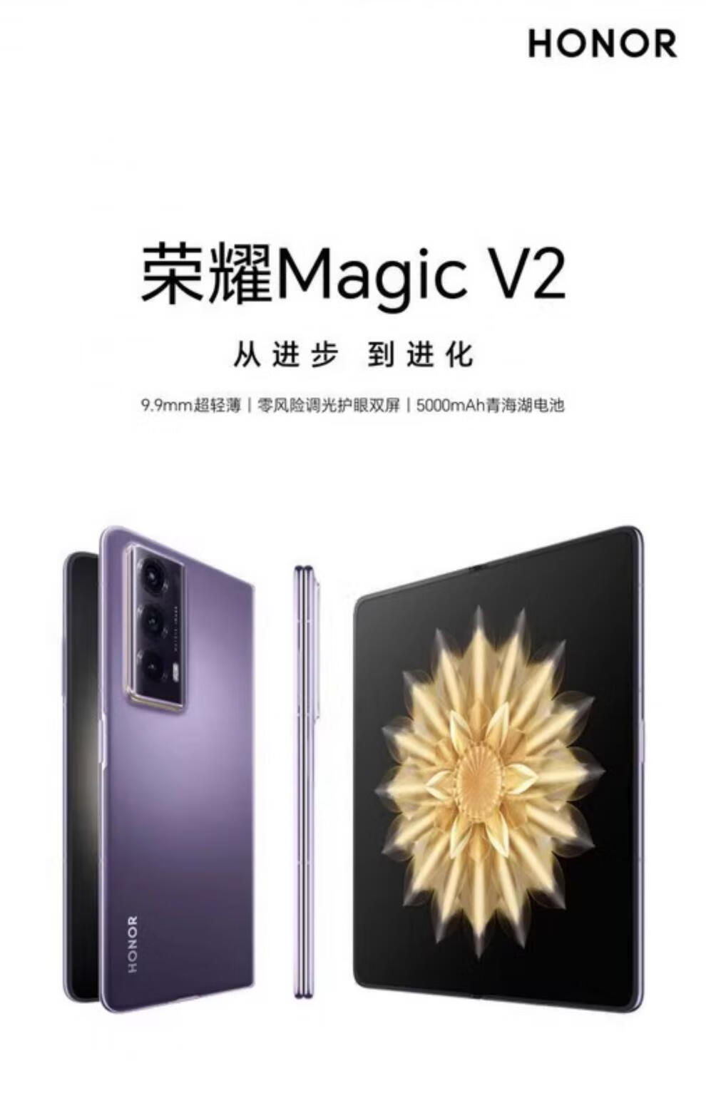 HONORhonor/荣耀 Magic V2折叠屏商务旗舰智能手机全网通5G超薄手机精选柜展机靓机商务手机折叠手机 绒紫色 5G通_套餐一_精选靓机_16GB+512GB_中