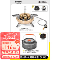 原始人户外炉头便携式卡式炉气化炉野外露营野炊烧烤炉 五芯猛火炉+烧水壶(1.6L)
