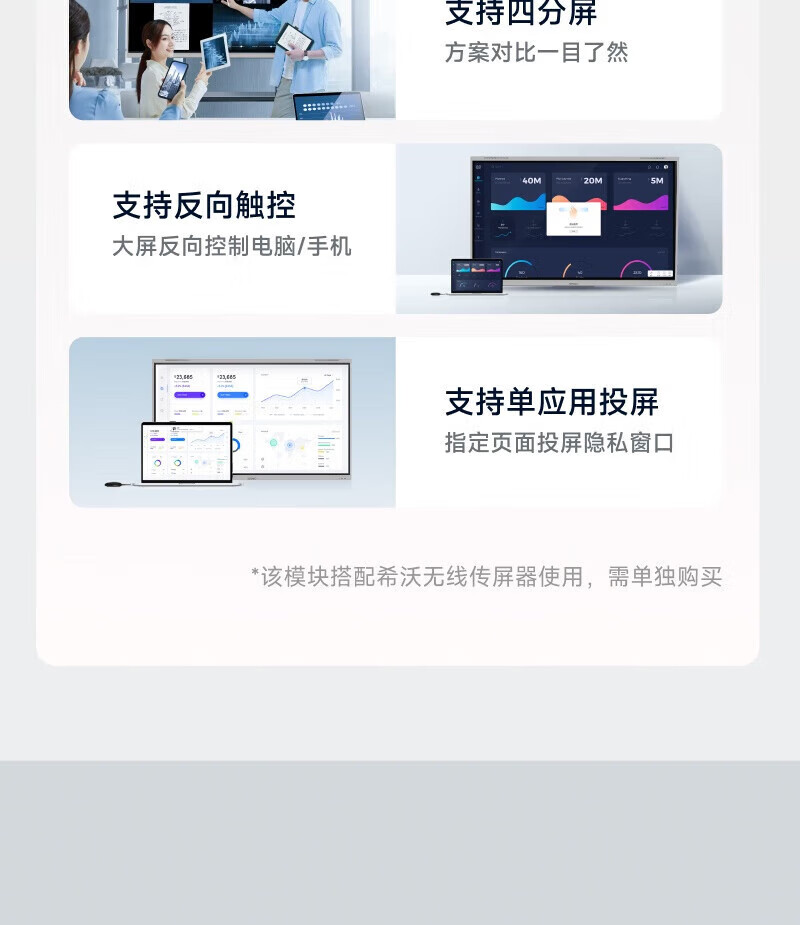 希沃65英寸电子白板多媒体教学触摸可移动电视会议平板一体机投屏器显示触屏4k智能大屏 i7 8G 256G+翻页笔