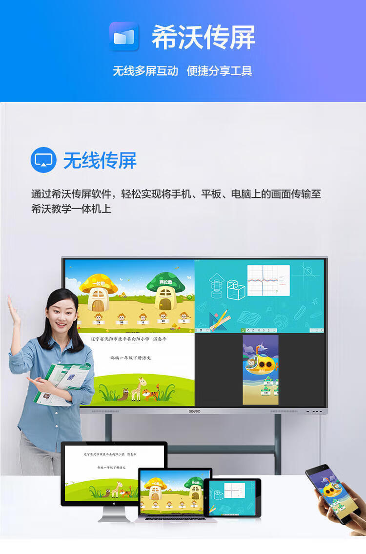 希沃seewo希沃教学触摸一体机白板智慧黑板65寸多媒体会议培训75/86寸交互平板触屏教学一体机旗舰店 86英寸 i3+8g+256g+ST33移动支架+投屏套餐
