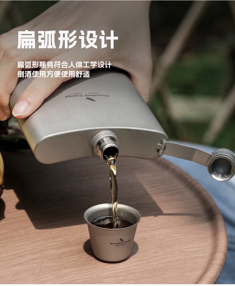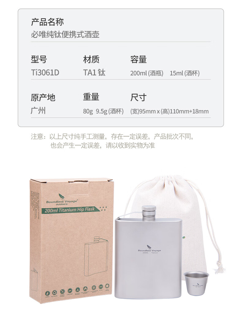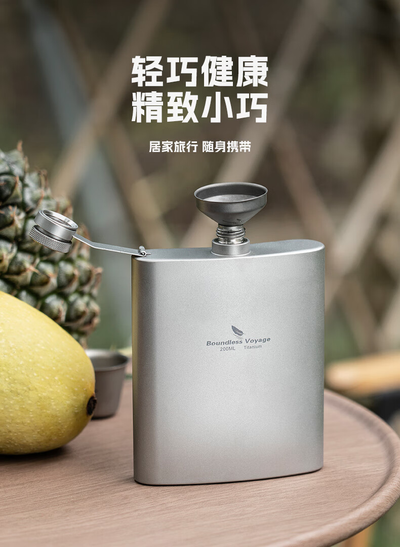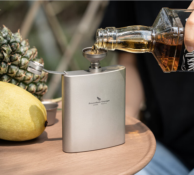 必唯(BOUNDLESS VOYAGE) 纯钛白酒壶随身水壶方型便携户外露营旅行白酒瓶200ml野营迷你壶 Ti3062D 酒壶+漏斗+酒杯