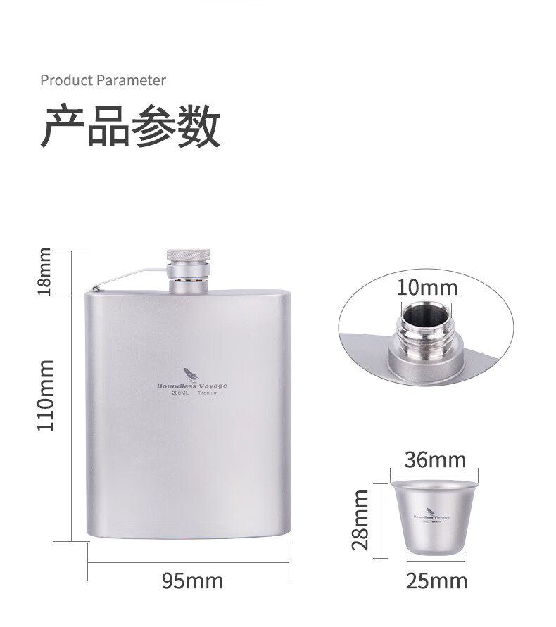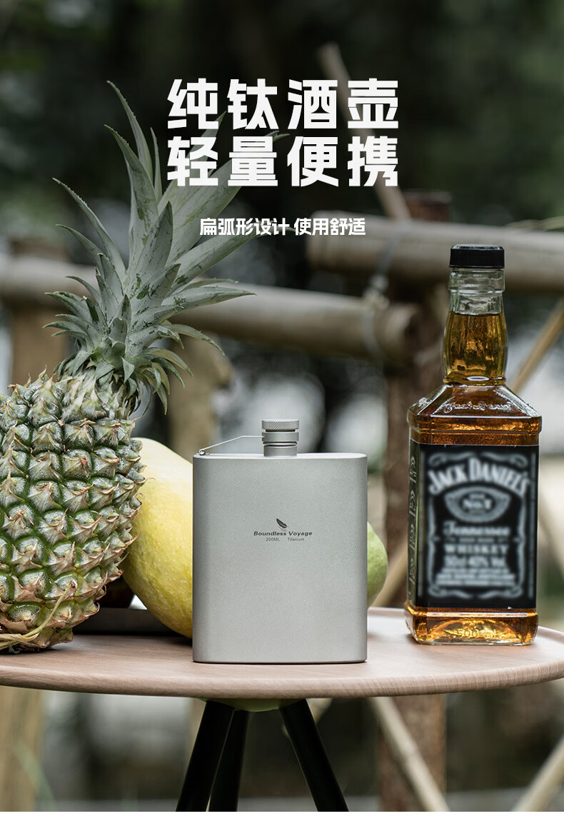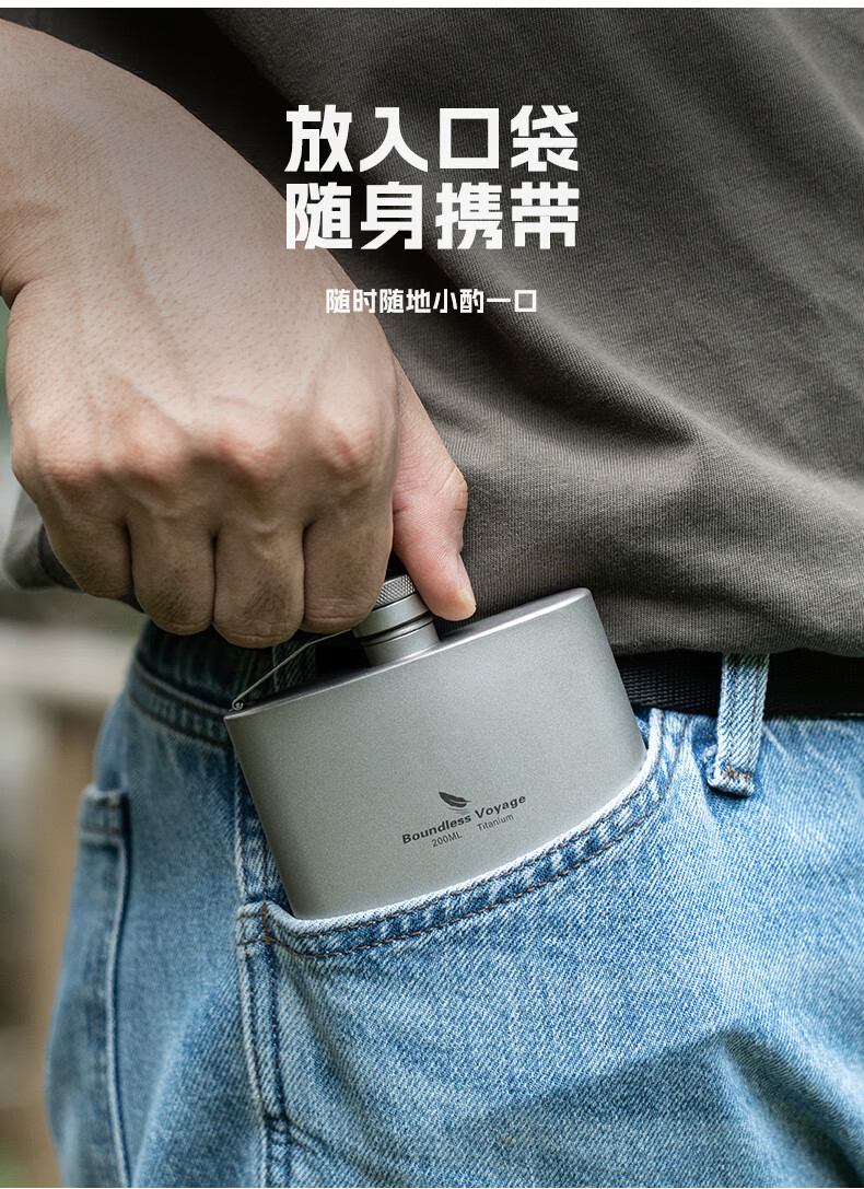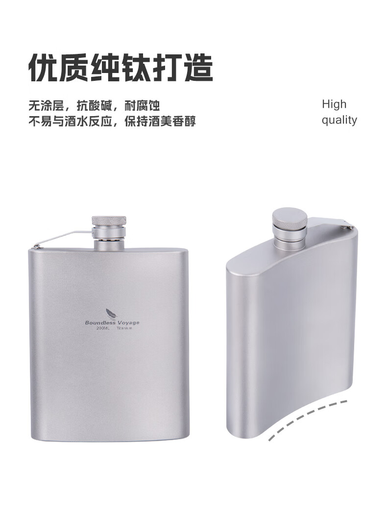 必唯(BOUNDLESS VOYAGE) 纯钛白酒壶随身水壶方型便携户外露营旅行白酒瓶200ml野营迷你壶 Ti3062D 酒壶+漏斗+酒杯