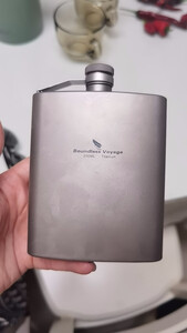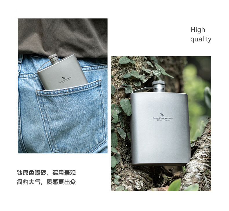 买来送人的,钛材质优点是很轻,携带也不会有负担。出去带一点小酒很不错~但是缺点就是太容易留下指纹了。。然后颜色就很丑,像掉色的感觉一样😅😅😅不过使用者很喜欢就没问题