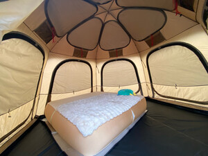 山脊原来的卧室帐篷小了点适合1-2人,一家三口就有点捉襟见肘了,一直在看星宿感觉非常合适,做工用料一如既往的好,通风遮光都没什么可说的,空间大多了,加上山脊再加上天幕和车尾连接件,应该会挺不错的。