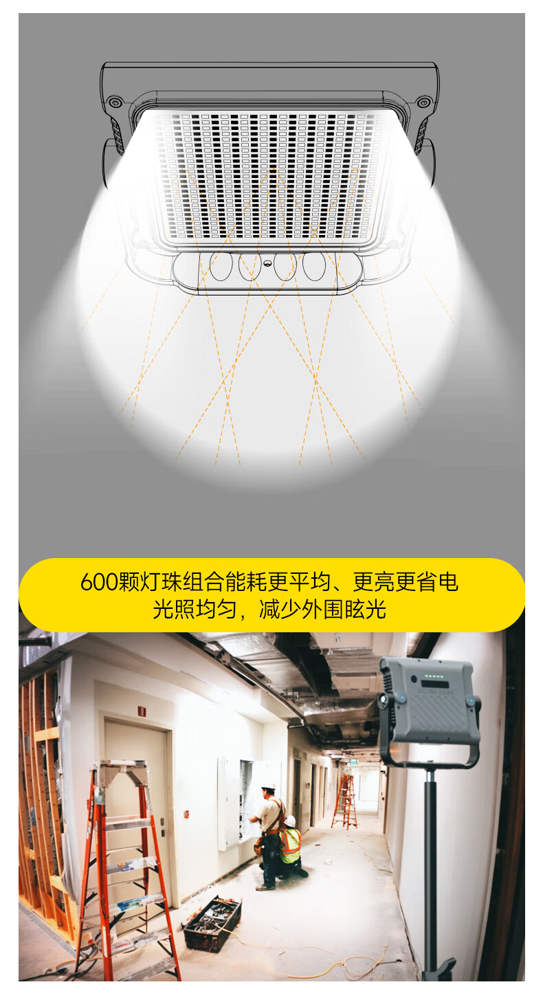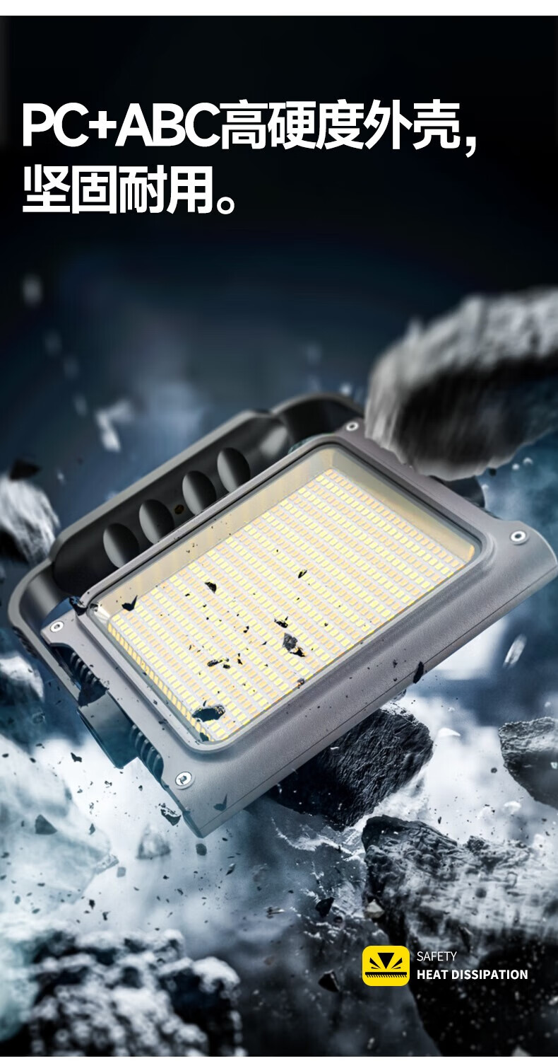 终于是买到满意的投光灯了,之前买过几个都很一般,这个是真的好,外观帅气好看,做工很实在不参假,有600颗灯珠,亮度杠杠的,照明一大片,清晰可见不晃眼,加上3万毫安的大电池,完全不需要担心没电了,还是防水防摔的,牛