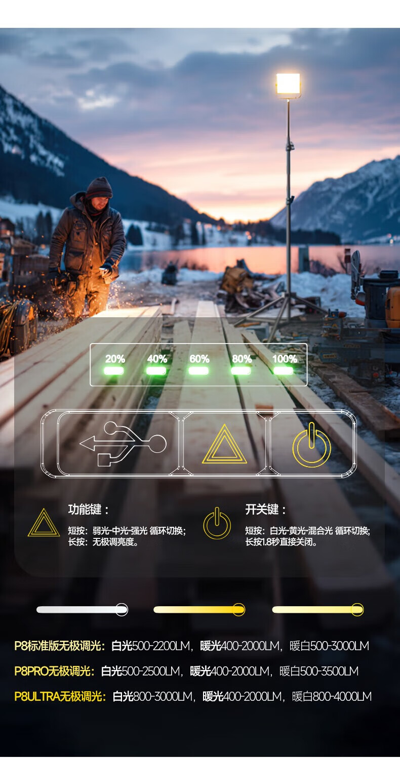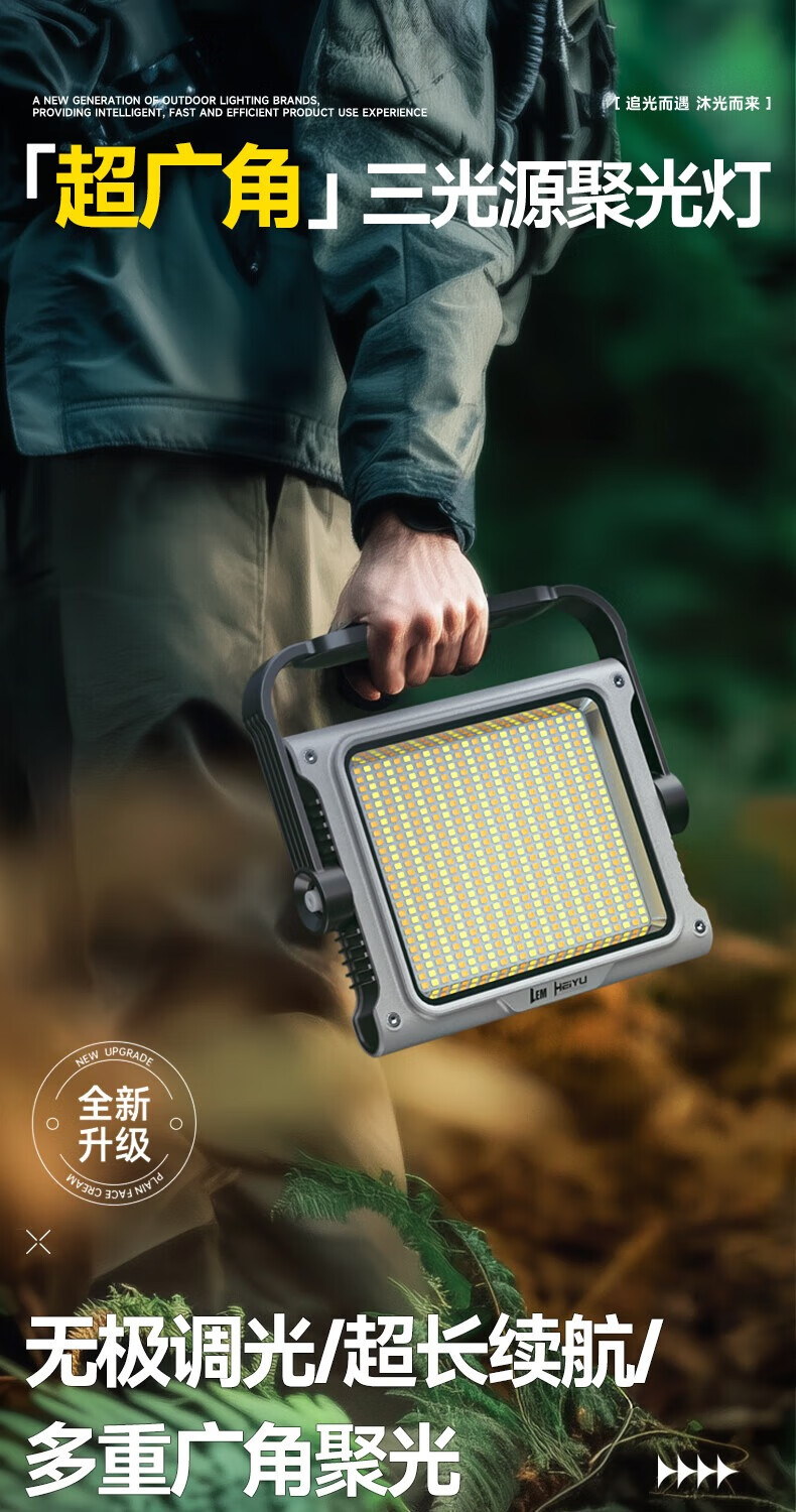 LEM露营灯超长续航强光充电超亮户外工地球场夜市营地照明投光灯 P8Ultra旗舰版90-4000LM无极调光_3
