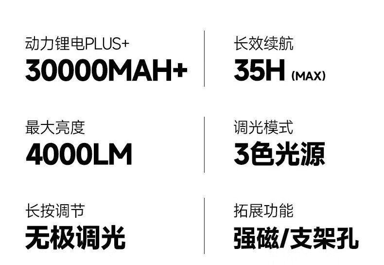 买来晚上干活用的,拿到手质感非常好,完全对得起这个价格,灯珠非常多,亮度超高,中档亮度就可以照亮一大片,多角度照明很精准,超大容量的电池可以使用好几天,出门在外安全感满满的,还有挂钩和磁吸功能,很方便!