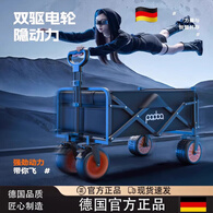 蕉京德国新款电动露营车手推助力户外营地野餐野营折叠推车 电动耀黑6KM续航版 有刹车