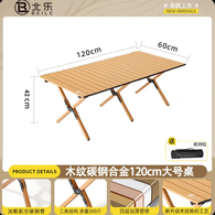 北乐户外露营蛋卷桌折叠野餐野营野炊桌子椅子套装便携式露营装备全套 木纹色大号【120CM】
