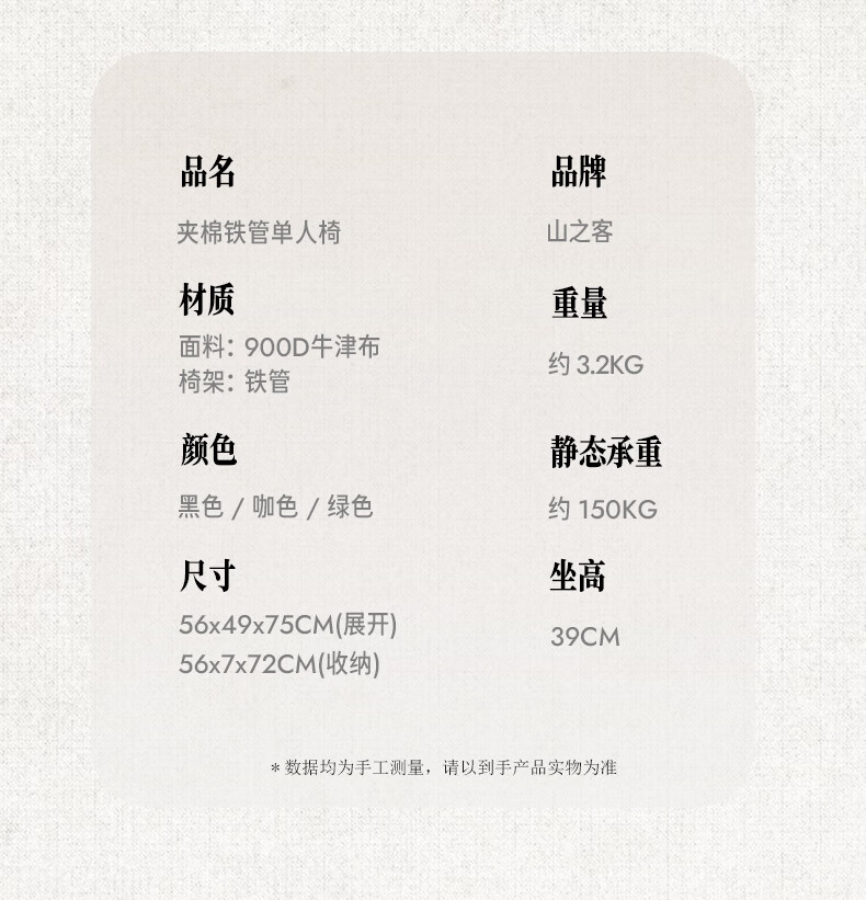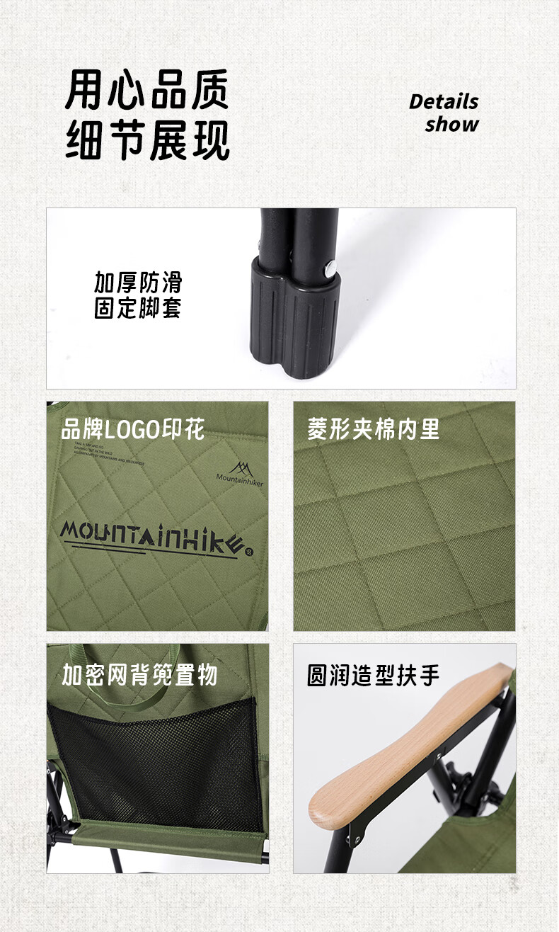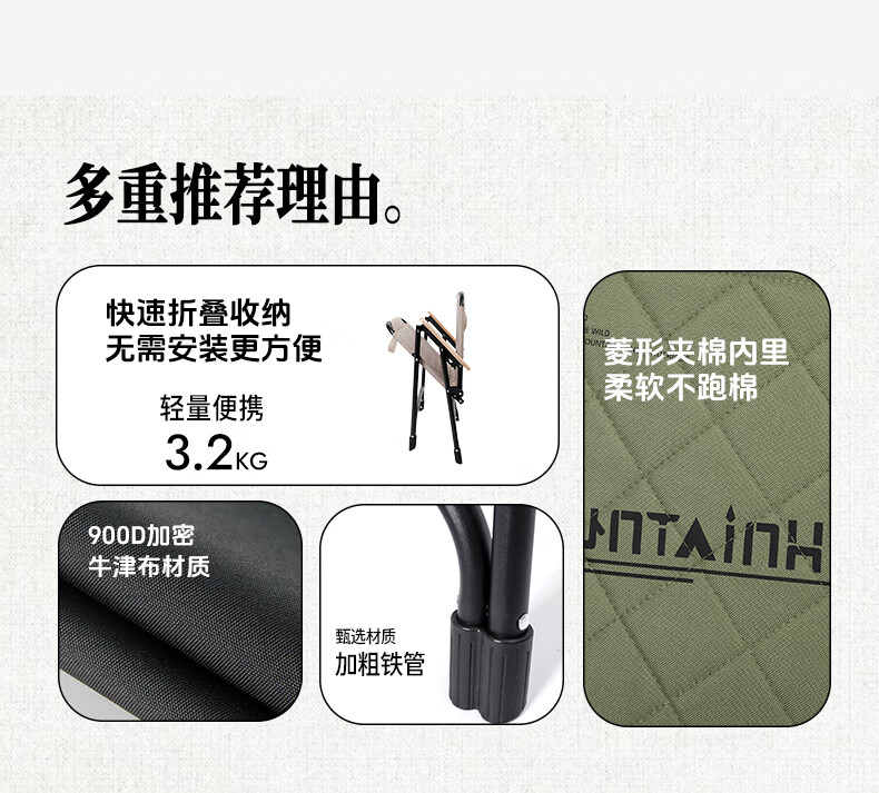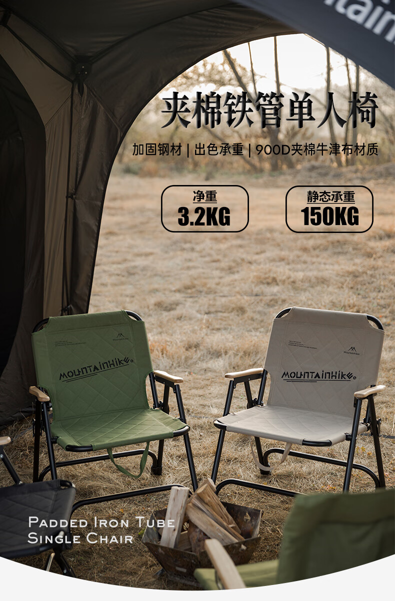 山之客单人椅丨夹棉铁管丨900D牛津布克米特户外便携野餐椅/三色 绿色 加厚夹棉内衬【承重150KG】