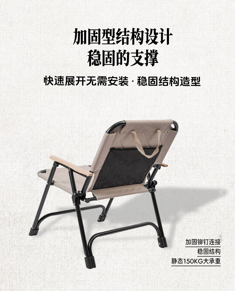 山之客(MOUNTHIKER)户外铁管折叠椅便携大承重稳固露营椅休闲钓鱼椅靠背椅野餐野营椅 磐石铁管折叠椅【黑色】