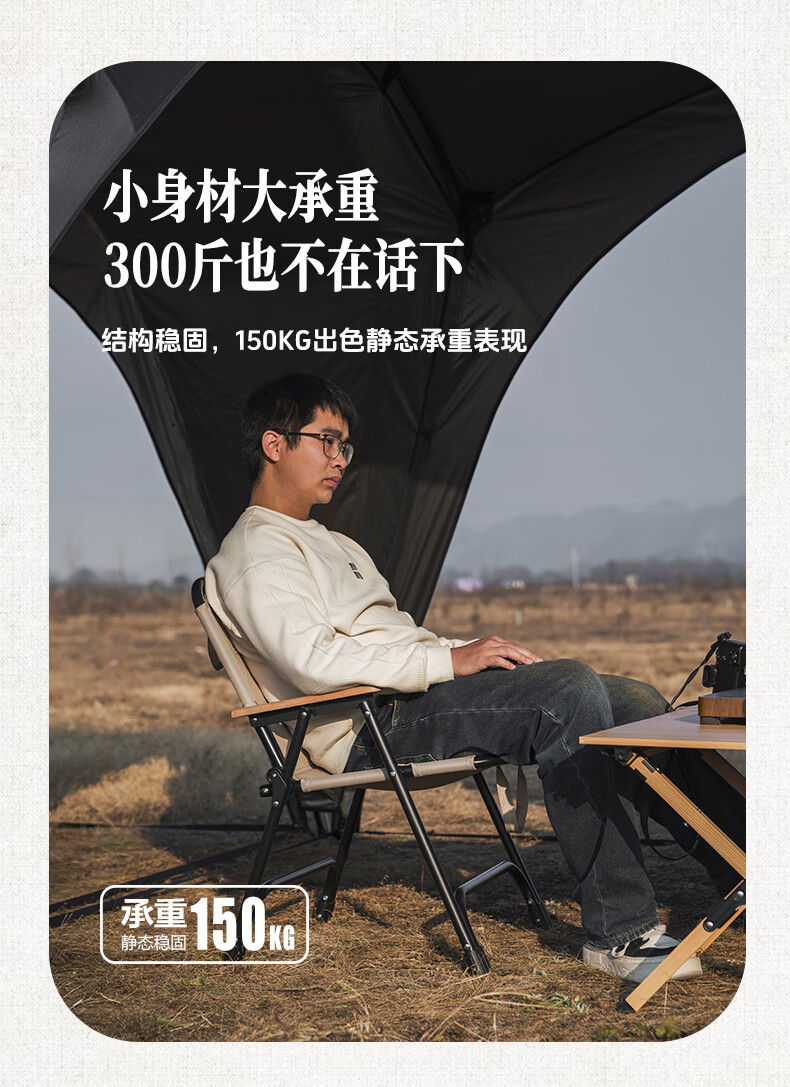 Naturehike挪客便携折叠月亮椅 户外露营休闲办公超轻铝合金钓鱼导演沙滩椅 黑色