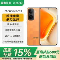 vivoiQOO Neo11 骁龙8至尊版 自研电竞芯片Q2 2K144Hz珠峰屏 7500mAh超薄蓝海电池 像素方橙 12GB+512GB 官方标配