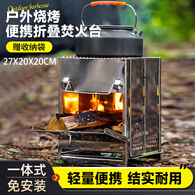 栢启歆 户外柴火炉折叠柴火灶不锈钢防风便携炉折叠野外烧烤炉子户外灶 户外便携式折叠炉【大号】 20*20*27