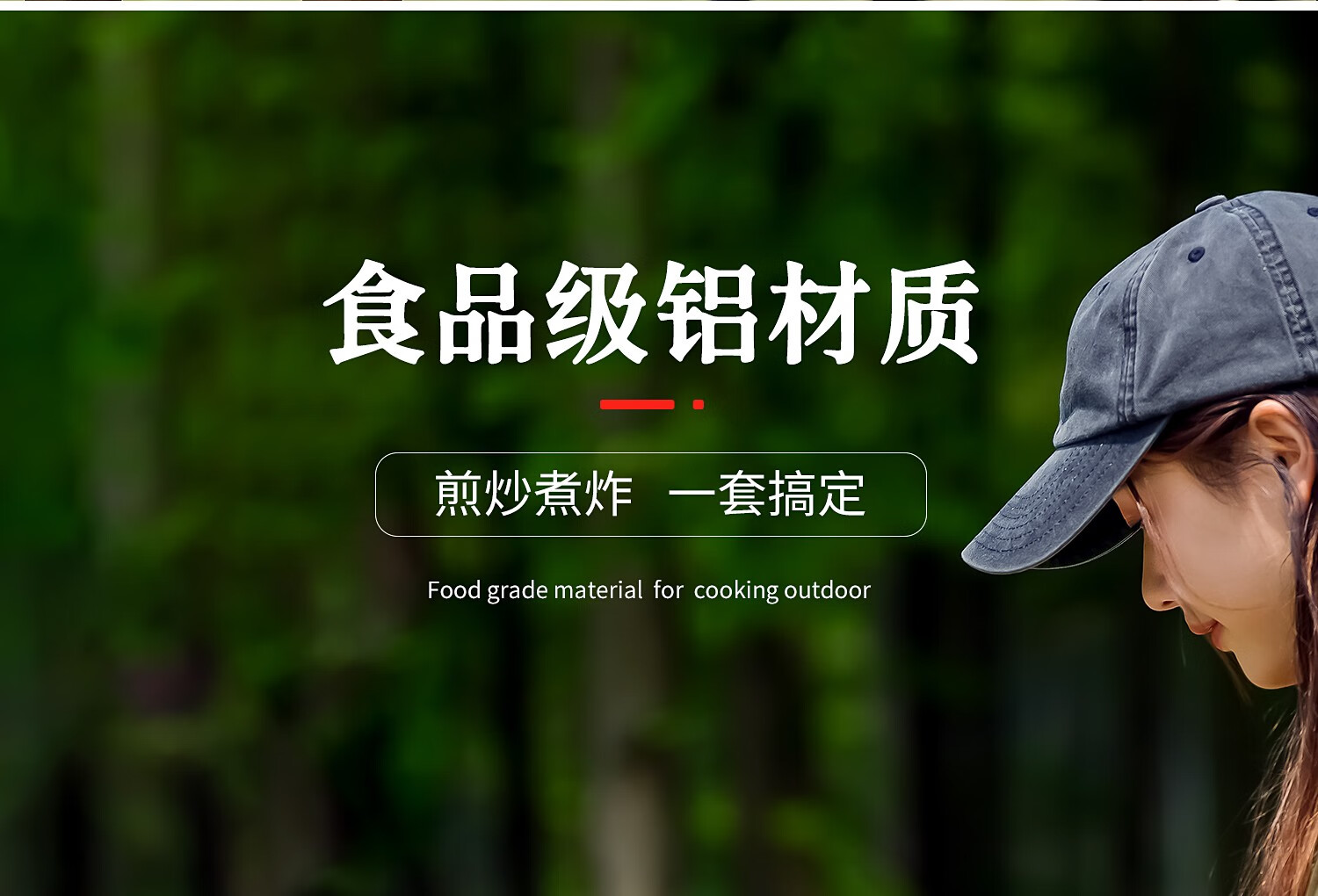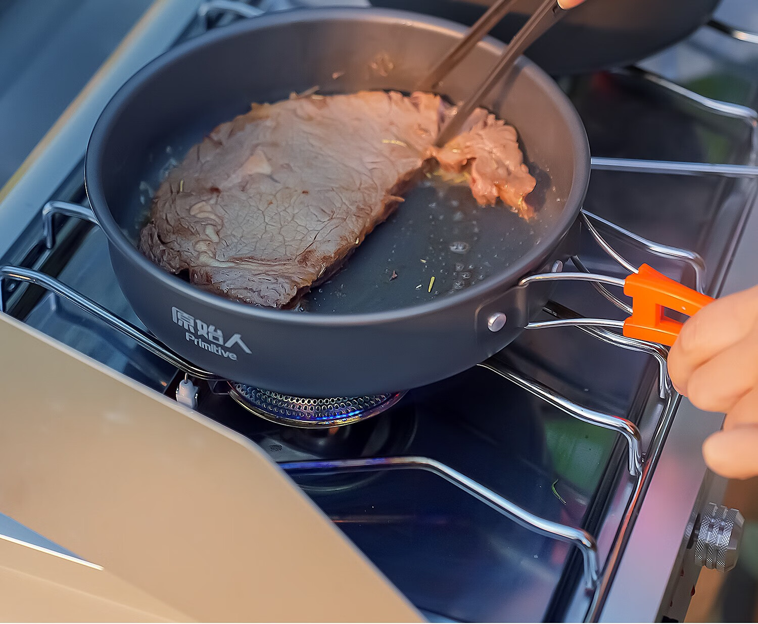 原始人露营炊具户外锅水壶煎锅装备便携野外野营套锅锅具用品 【食品级铝合金】中号煎锅