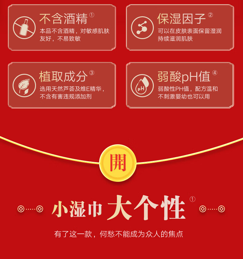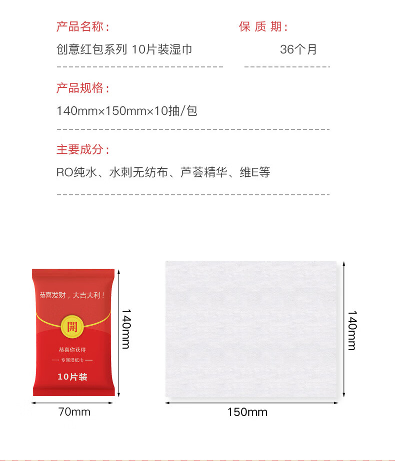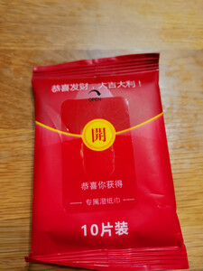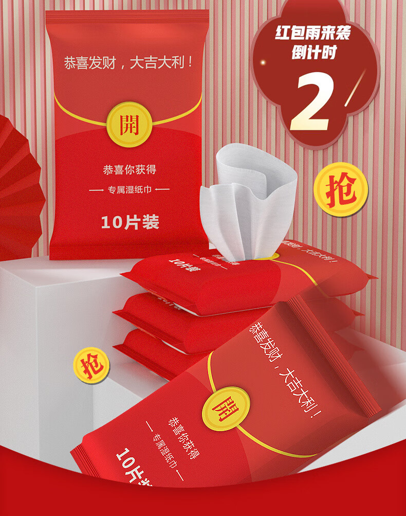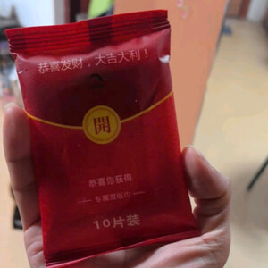 这个红包式湿巾太绝啦!过年买它真的太应景,喜庆包装一拿出来就年味满满。里面的湿巾尺寸大,擦手擦脸都够用,水分很足,用起来温和不刺激。独立包装,方便携带,走亲访友随时能用。有了它,新年清洁超省心,推荐!