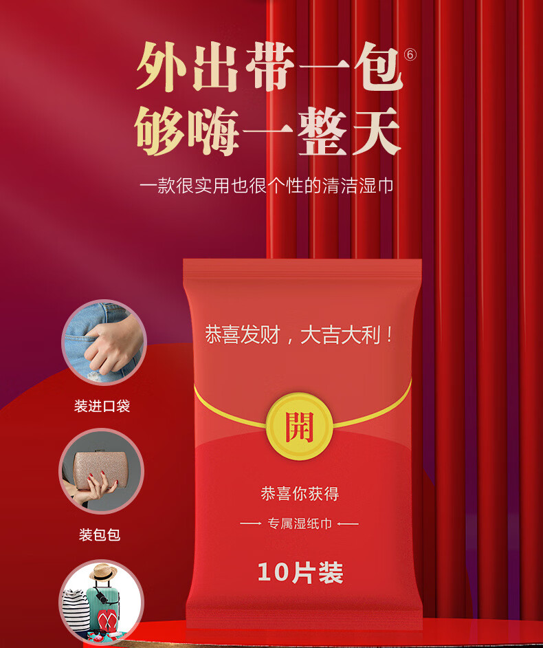 【一元一包】创意礼品红包湿巾纸抽取式湿巾旅行便携纸巾湿巾 【恭喜发财红包款-湿纸巾】10包