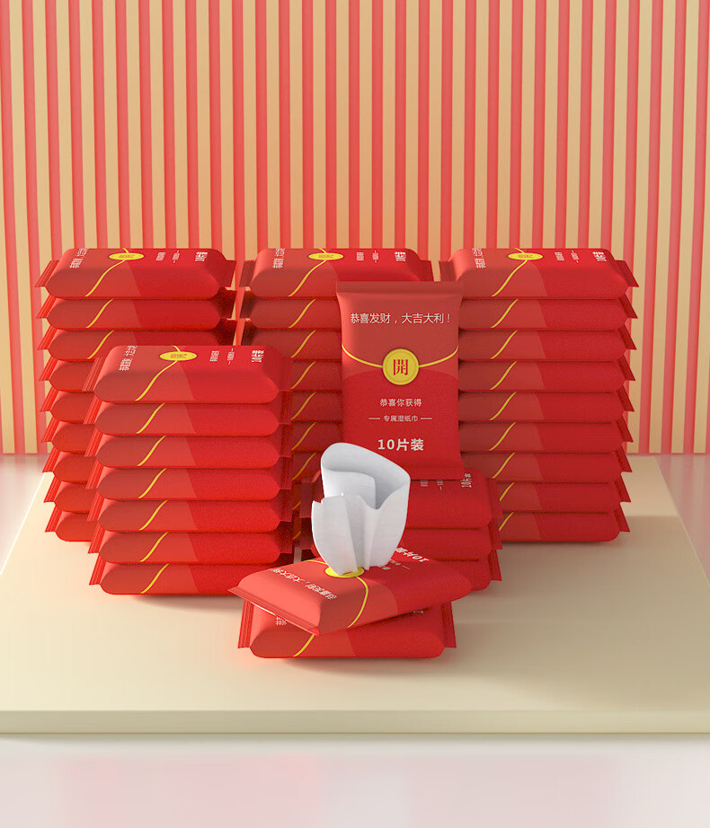 这款红包湿巾很有创意,抽取式设计用着方便。旅行带着不占地方,湿巾质感不错,清洁力也可以,作为小礼品或自用都合适,挺满意的。