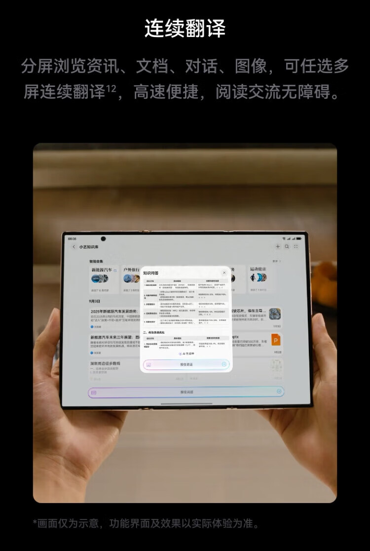 外形外观:三折叠就是三折叠 屏幕音效:完美的屏幕,巨大 拍照效果:拍照也很清晰 其他特色:紫色非常好看,手感也好。