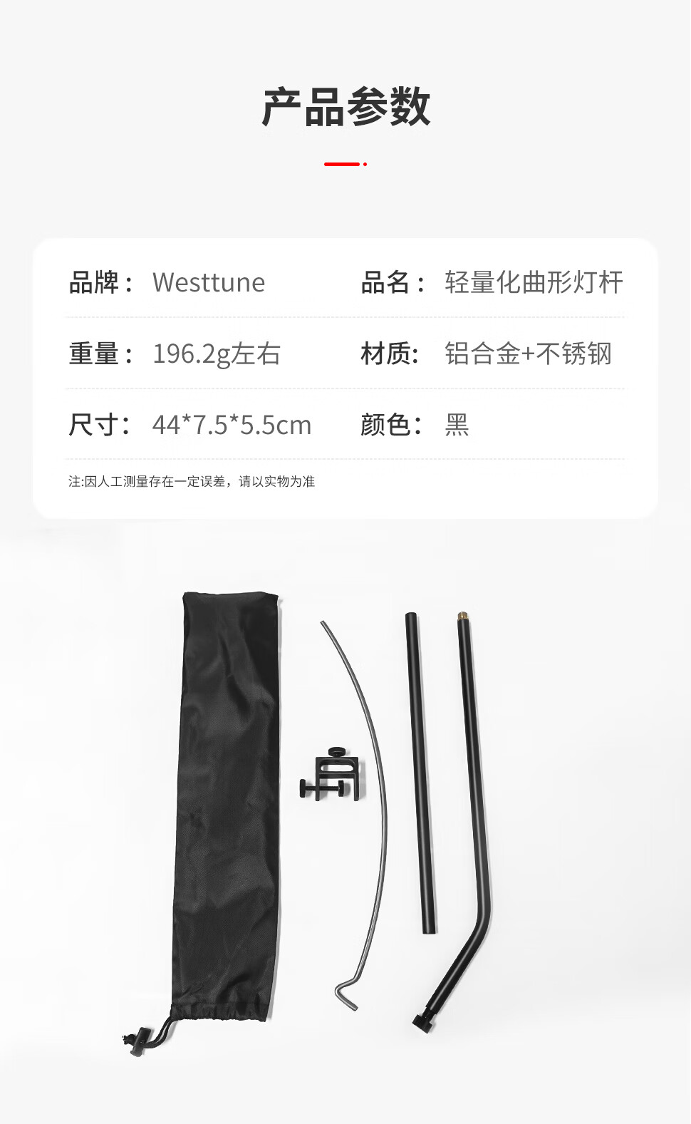 WESTTUNE户外露营IGT桌灯架弧形铝合金便携灯杆可调节支架夜钓灯 灯架套装