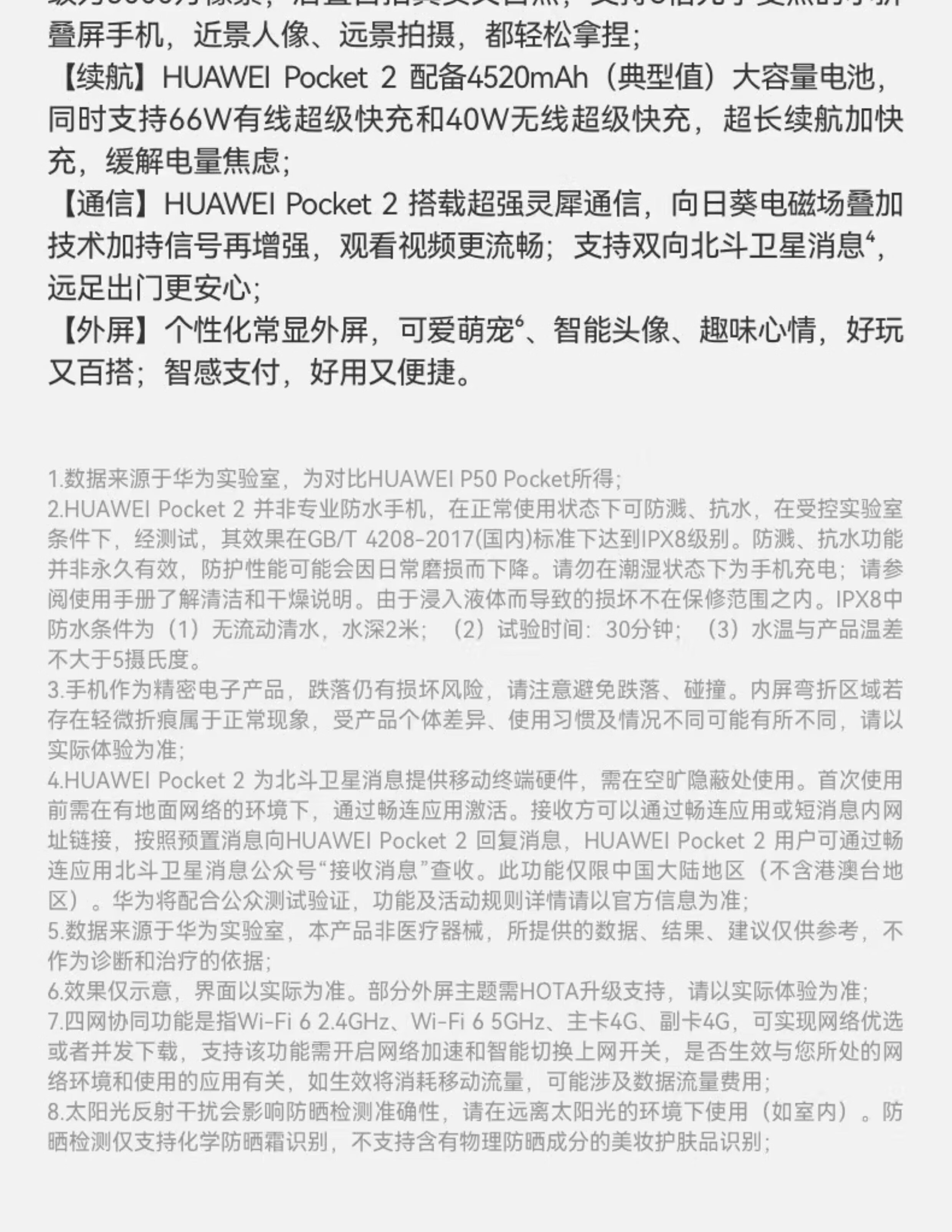 华为(HUAWEI)Pocket 2新款折叠屏口袋手机官方华为小折叠pocket2 大溪地灰 12GB+256GB