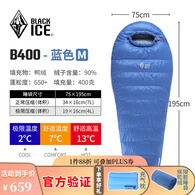 黑冰新款B系列B700/B1000木乃伊式鸭绒睡袋户外成人防寒保暖羽绒睡袋 B400蓝色M号【左开,舒适温度7度】