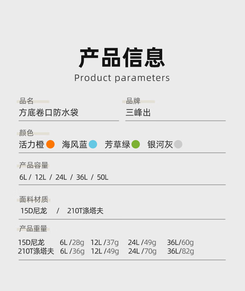 一直很喜欢三峰出的各类户外用品,这款户外方底防水袋,漂流,溯溪等水上户外使用很方便,也很轻巧,大小合适,好用不贵,值得推荐购买。