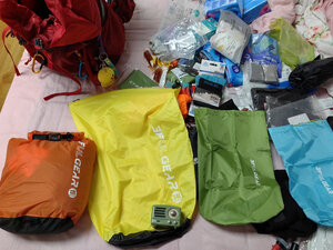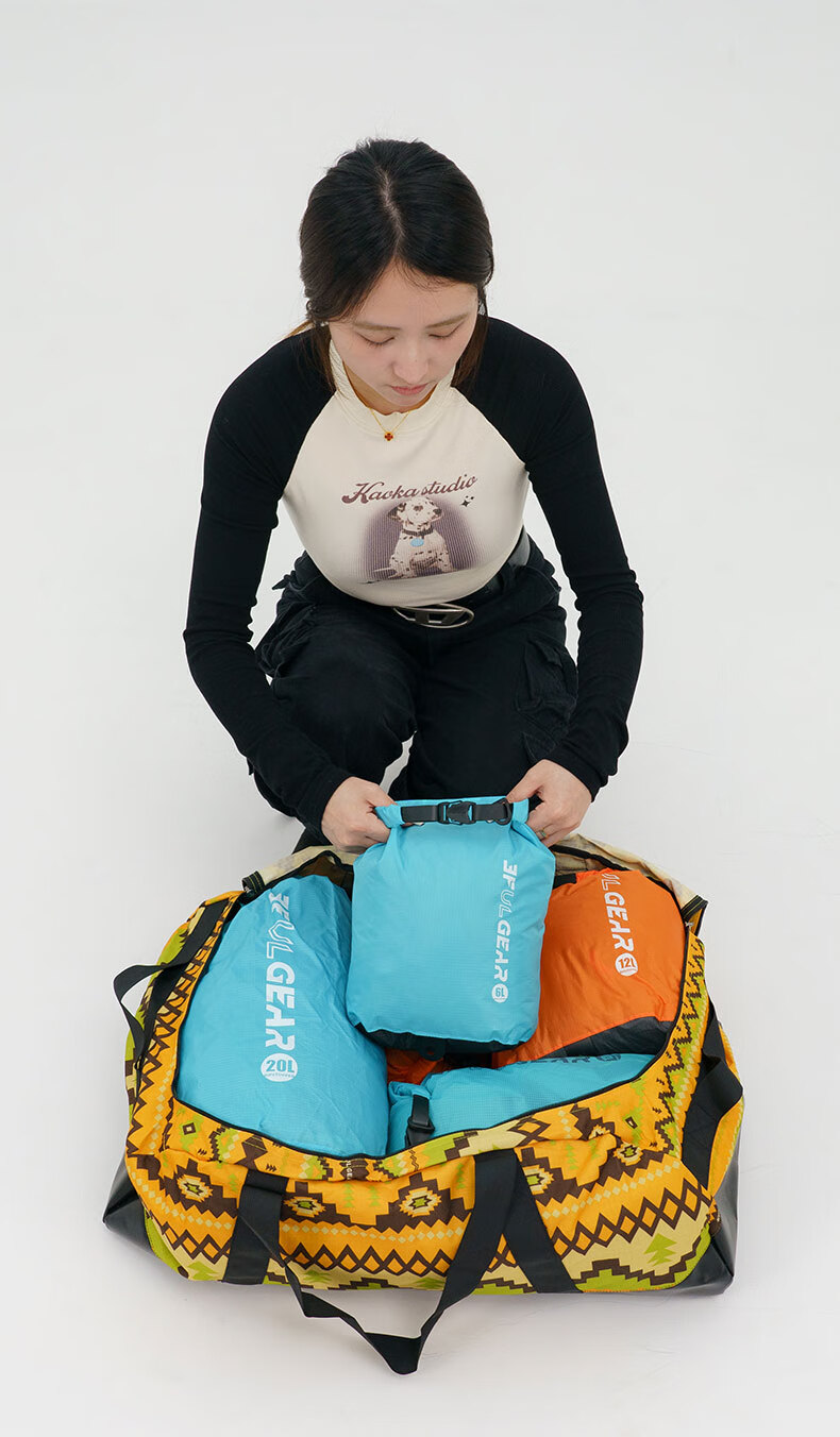 两个防水袋分开买的,都是同一家店,是三峰出的正品,防水效果应该可以,有待去乌孙验证,雨衣帐篷雪套等也都是这个牌子,稍贵但品质有保障。