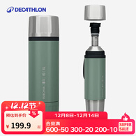 迪卡侬保温杯不锈钢可拆卸茶杯户外露营旅行便携式多用途水杯ODAB 森林绿1000ml