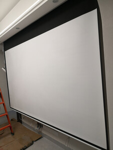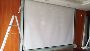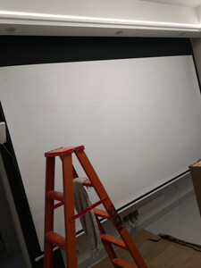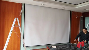 搞上去了,买之前没量尺寸,3.65米的幕布拆完包装,拆完挂耳正好进电梯