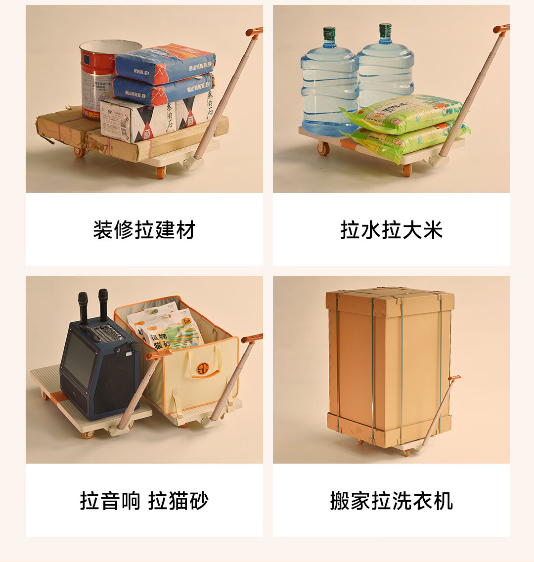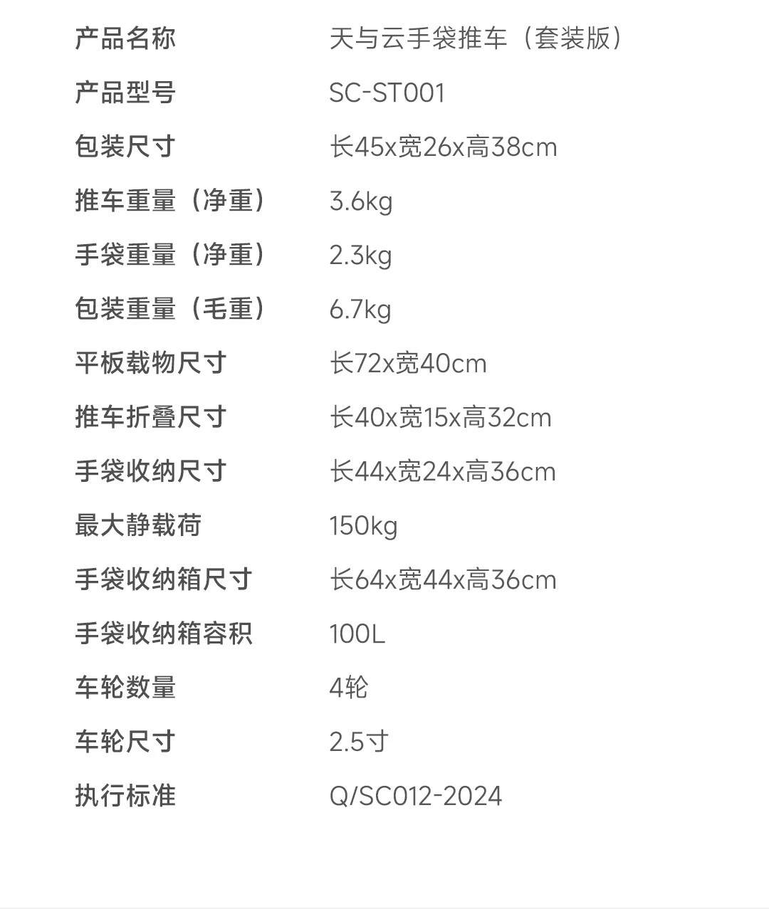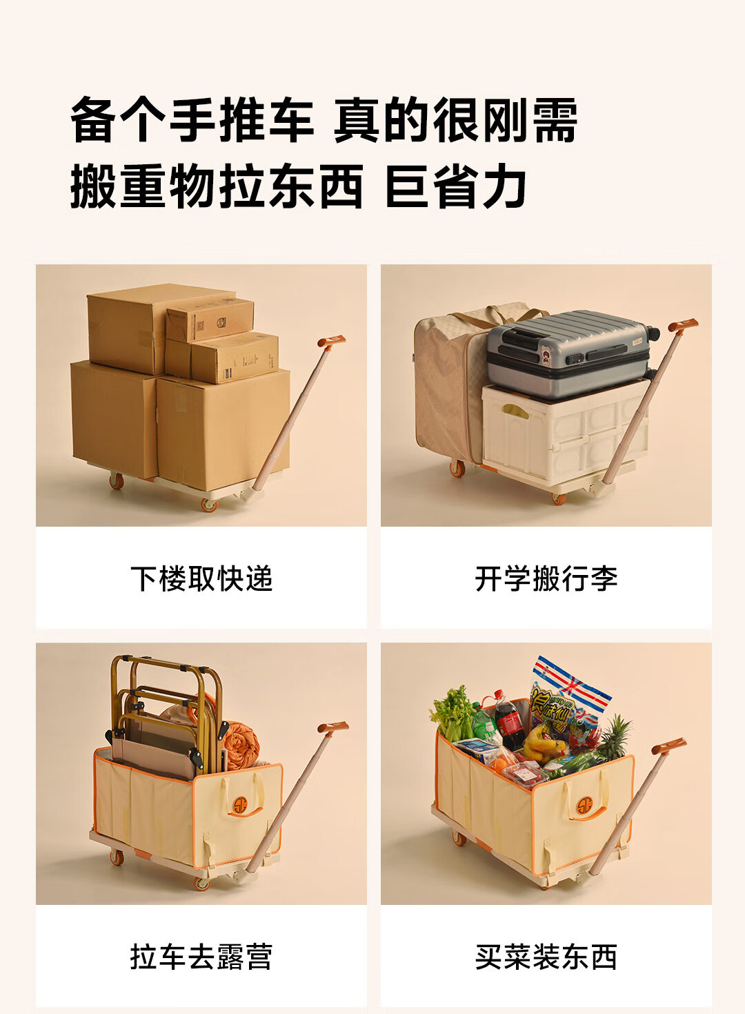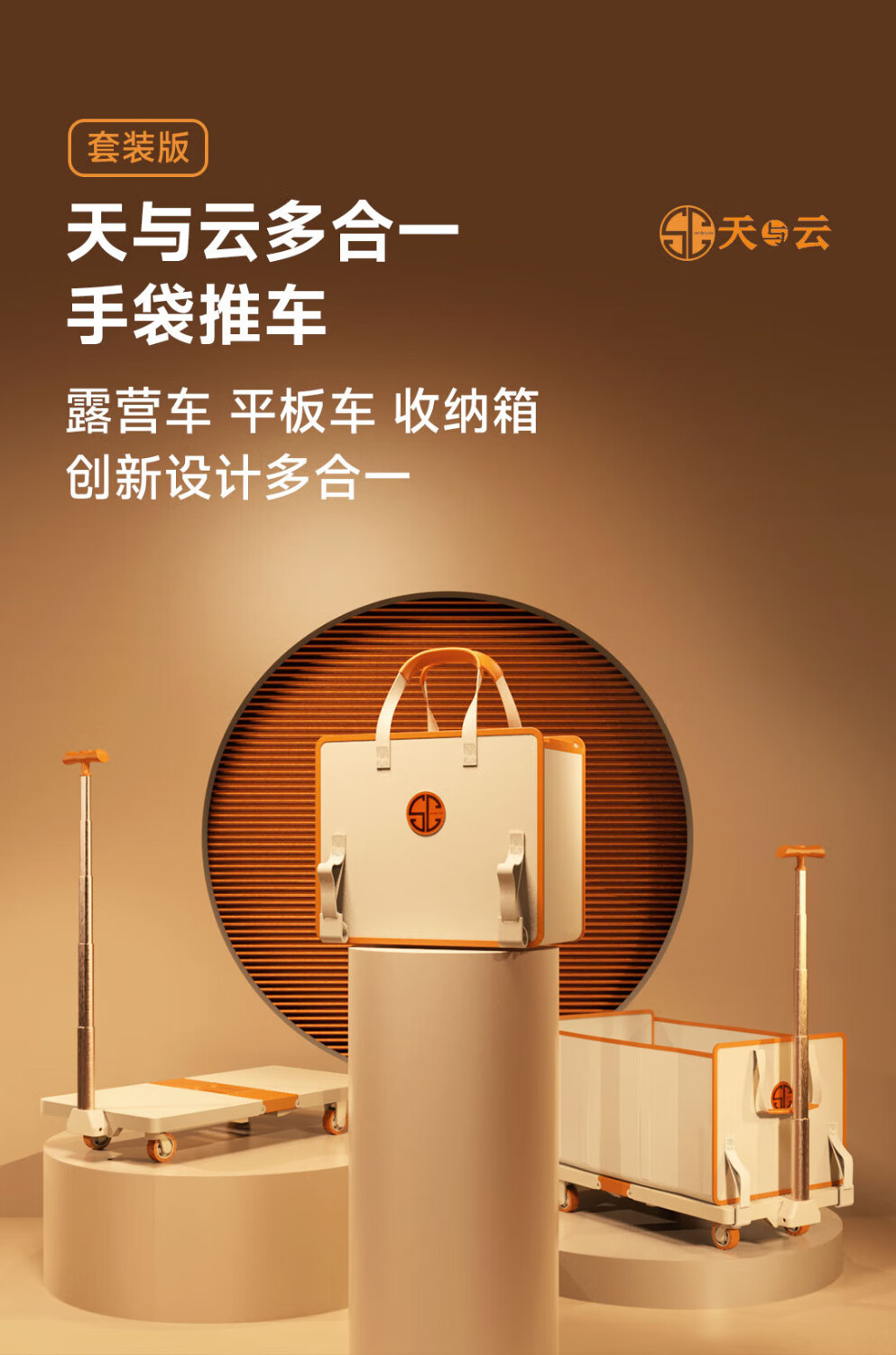 包装严实得很,里三层外三层,完全不用担心运输途中会有磕碰,商家在这方面真的很用心。打开包装,推车的颜值直接惊艳到我。整体设计简约又不失时尚感,线条流畅自然,材质看起来质感满满,摸起来细腻顺滑,没有任何粗糙的边角,细节处理堪称完美。 这个推车的功能设计是我想要的那种!它既是一个精致的手袋,容量可观,能轻松装下不少日常用品,伸缩各种大小就变成了收纳箱。还能变成小板车轻松搬家没问题,而且配备了支腿,能秒变桌子,操作简单易懂,我研究了一小会儿就轻松掌握了转换方法。虽然还没正式使用,但就冲这巧妙的设计,我已经迫不及待想要带着它出门了。 车轮是那种静音顺滑的材质,轻轻转动,几乎没有噪音,而且转动灵活,一看就很耐用。在组装过程中,各个部件之间的衔接紧密,安装很轻松,完全不需要借助其他工具,徒手就能搞定。 不得不说,天与云多合一手袋折叠推车真的给了我超多惊喜。从拆箱的第一印象来看,无论是颜值、材质还是功能设计,都无可挑剔。我已经对它的实际使用体验充满了期待,相信它之后在各种场景下都能表现出色,绝对是值得入手的宝藏好物!