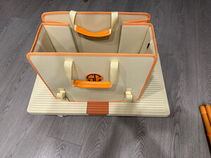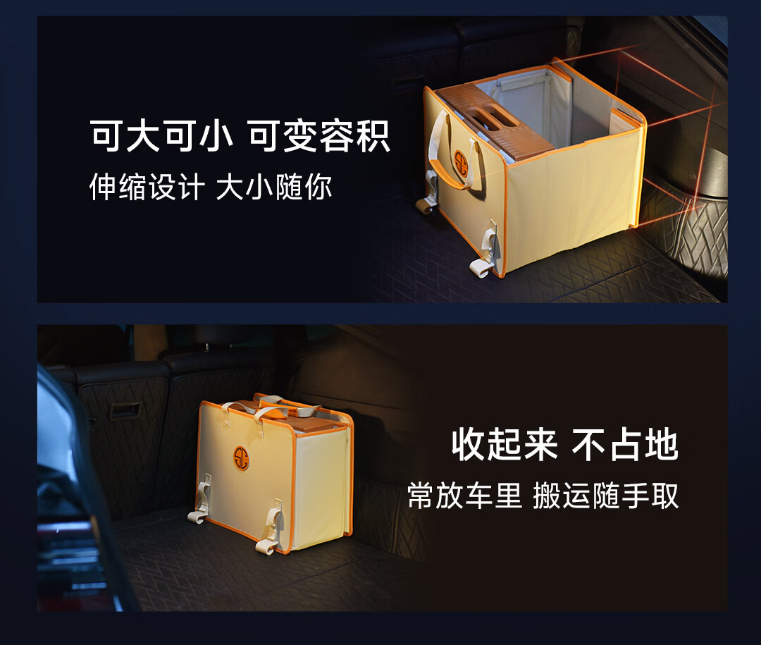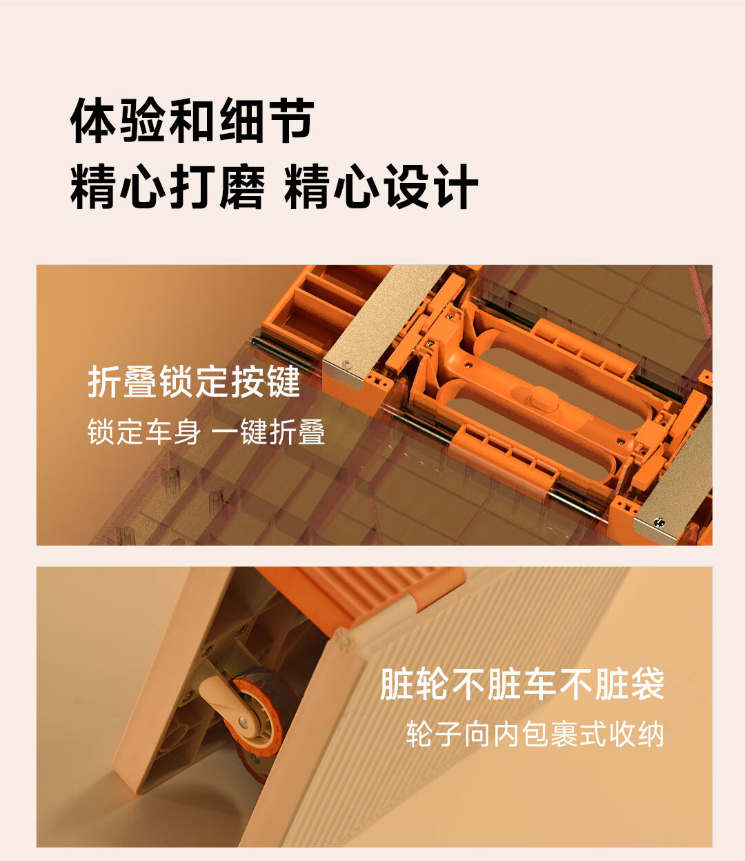 整个小车的设计很巧,布筐也很好固定,折叠收纳后体积很小,很轻很便携,放车上挺好,当桌子用也不错。
