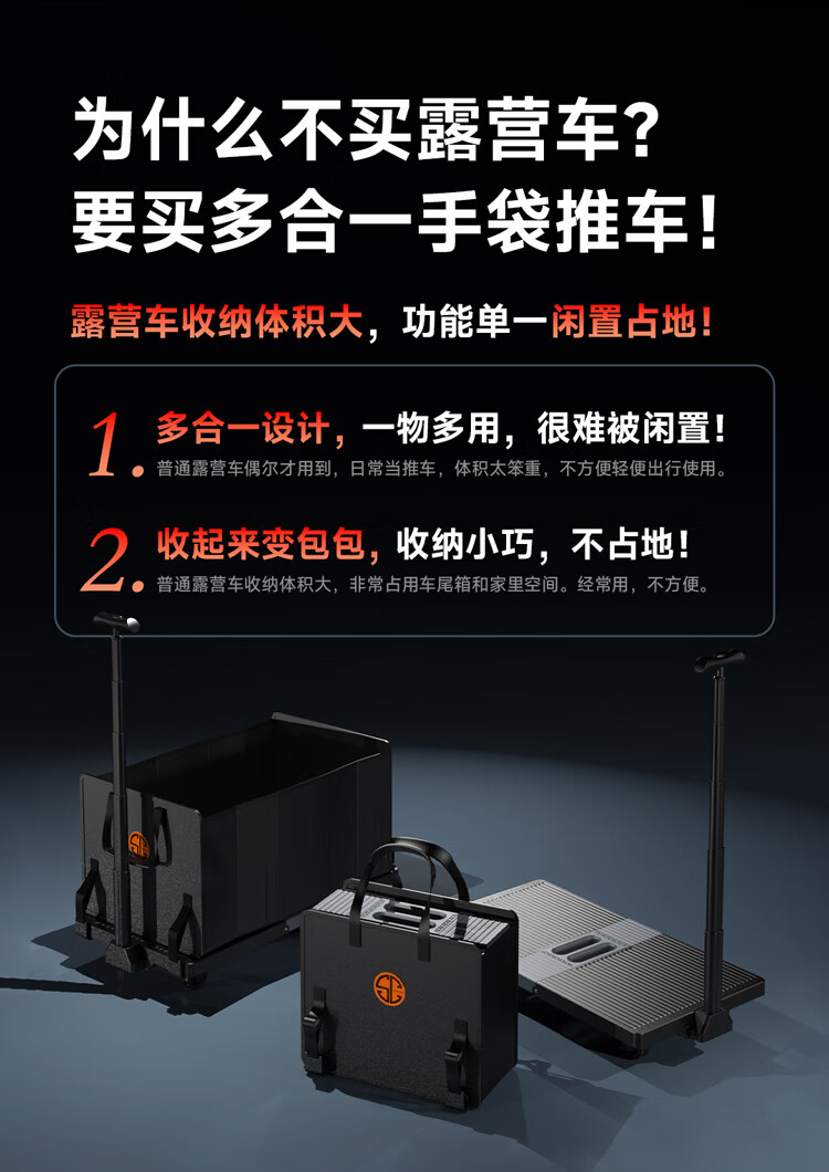 布比克多合一手袋推车便携超轻折叠户外露营车营地拖车野餐野营小拉车 璀璨橙 无规格
