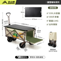 北山狼 户外露营车折叠推车 带桌板营地车野营推车大容量 米色 330L 有刹车 【原创印花】+黑铁桌板