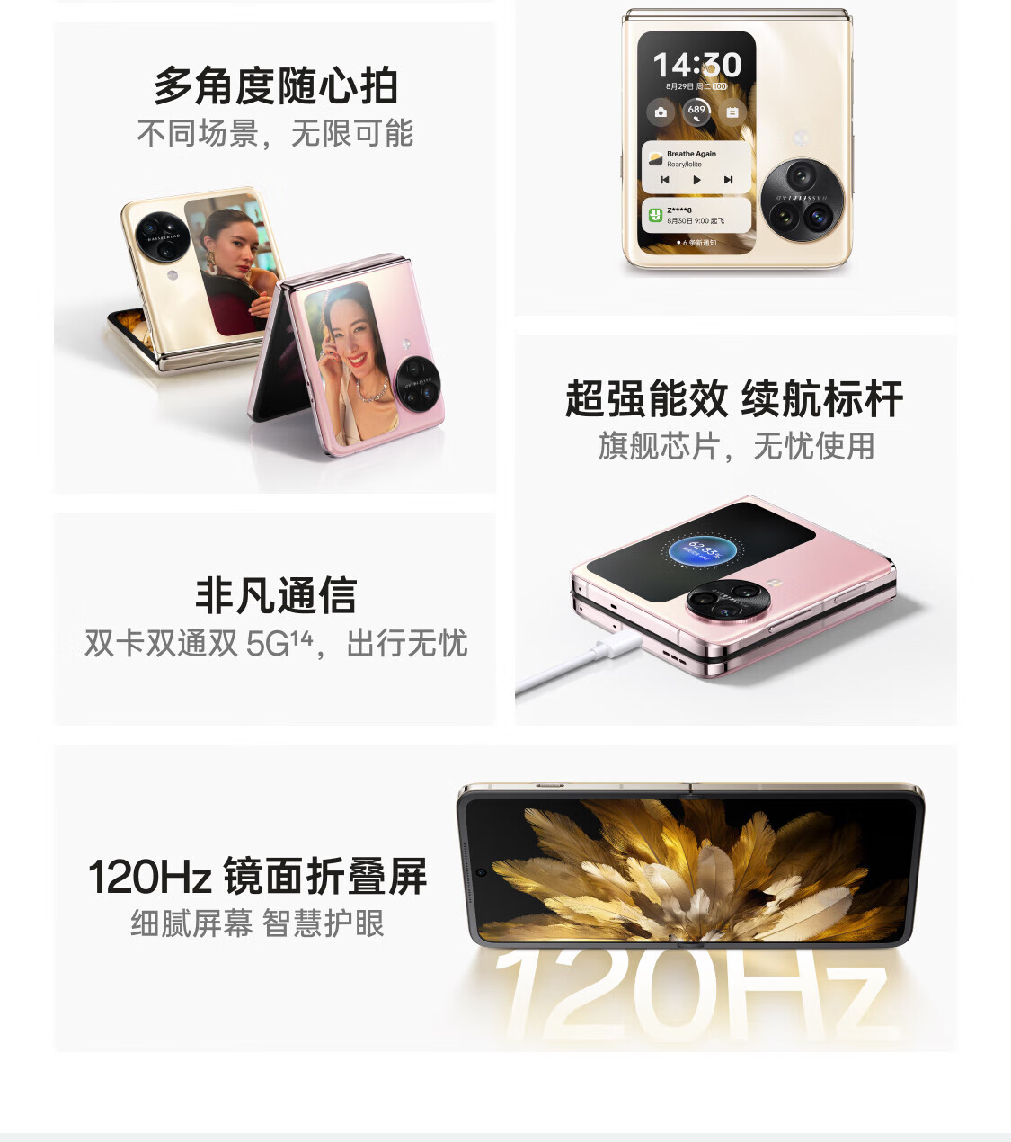 OPPOFind N2 Flip 5G通折叠屏 120Hz镜面屏 5000万超清自拍展样机 雅黑 16GB+512GB_套餐一_N2_Filp