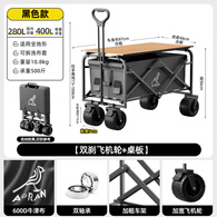 Aoran 露营推车可折叠户外手推野餐车营地拖车拉杆小拉车桌板野营车 黑色【双刹飞机轮+桌板】