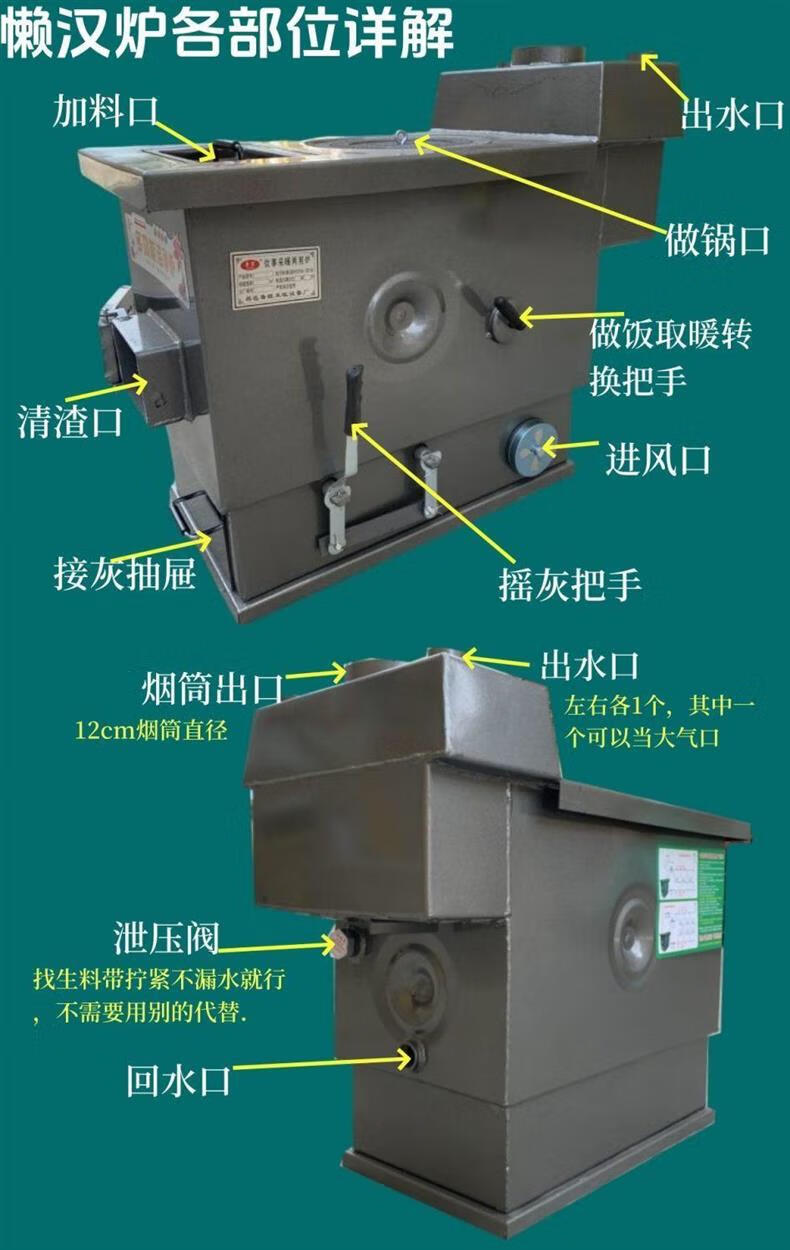 农村家用采暖炉反烧懒汉炉取暖烧水做饭通炕节能暖气地暖柴煤两用 120型懒汉炉