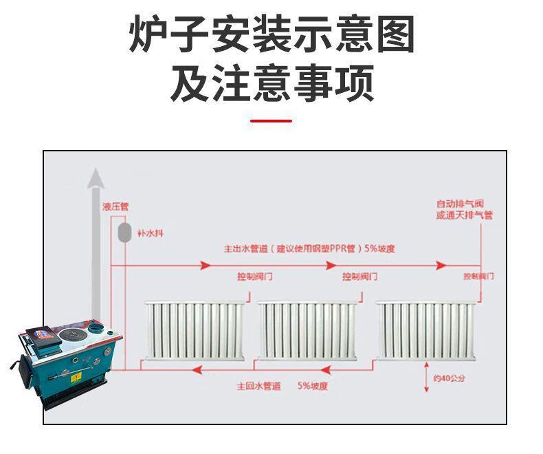 露若锅炉燃煤家用节能暖气炉农村带暖气片地暖取暖炉子小型反烧锅炉 新款节能60型双气化炉 加厚钢板