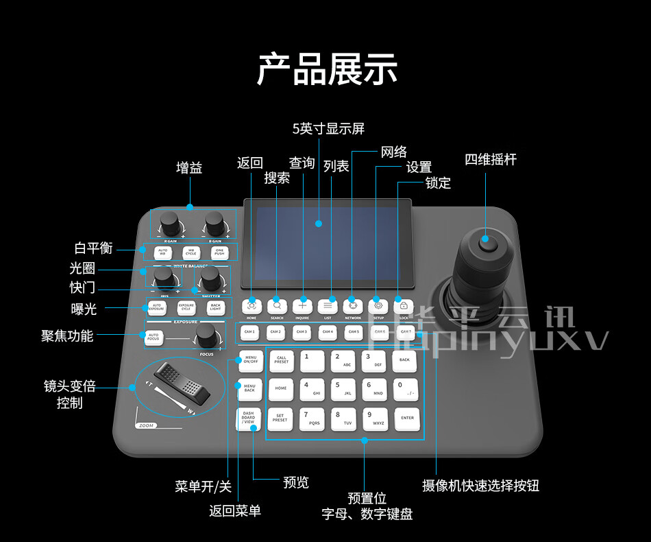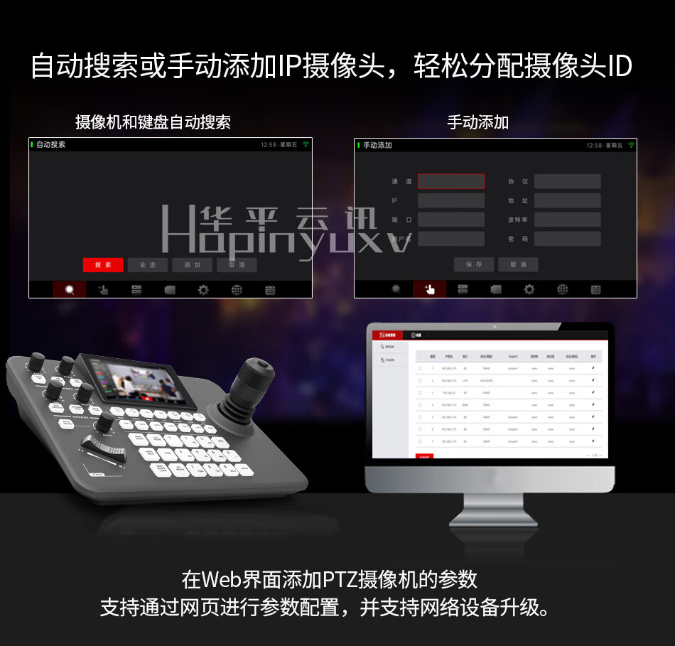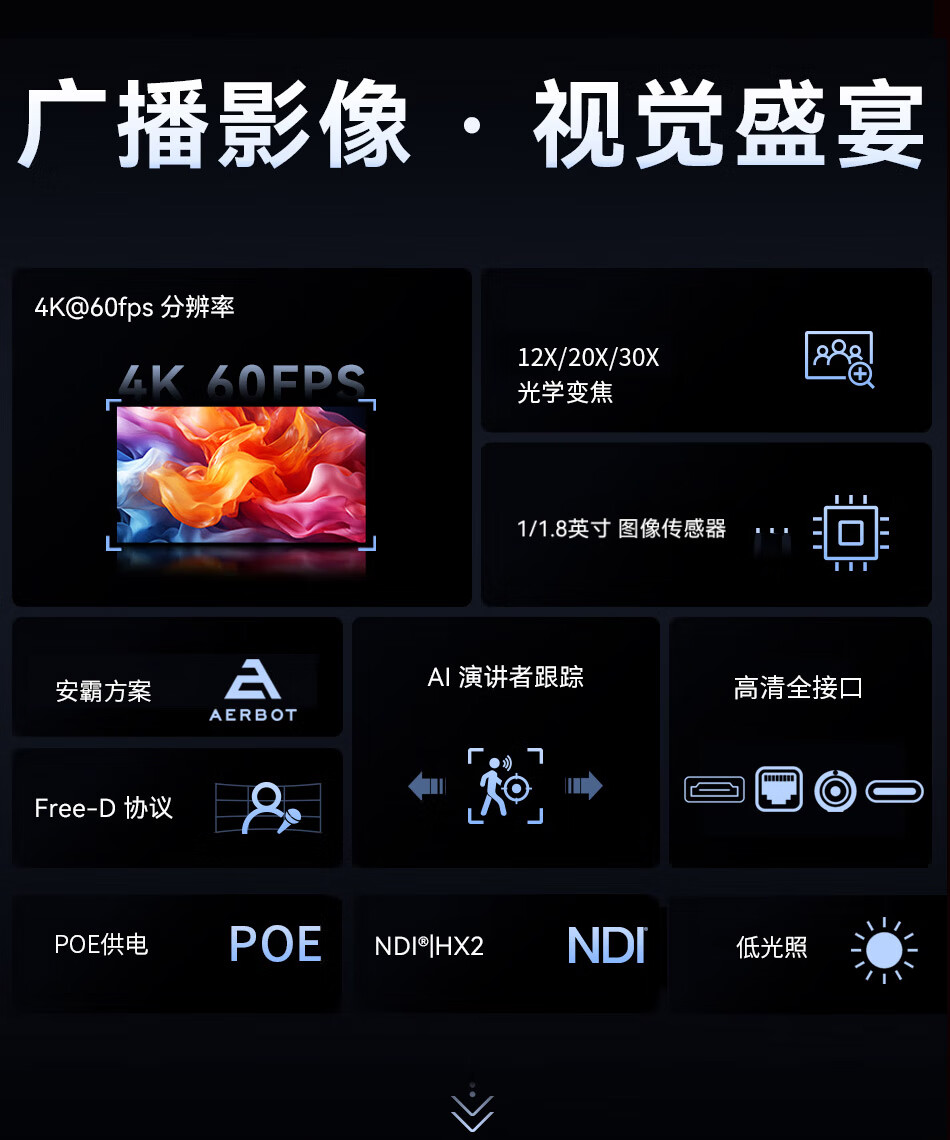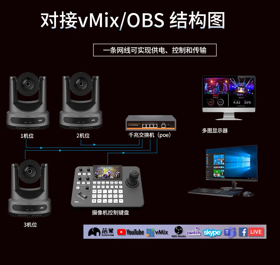 华平云讯4K广播级云台PTZ摄像机4K60fps专业直播摄像头套装 AI跟踪体育赛事教堂直播录播兼容芯象/OBS/vMix 4K/60帧 20倍NDI*3+NDI键盘*1